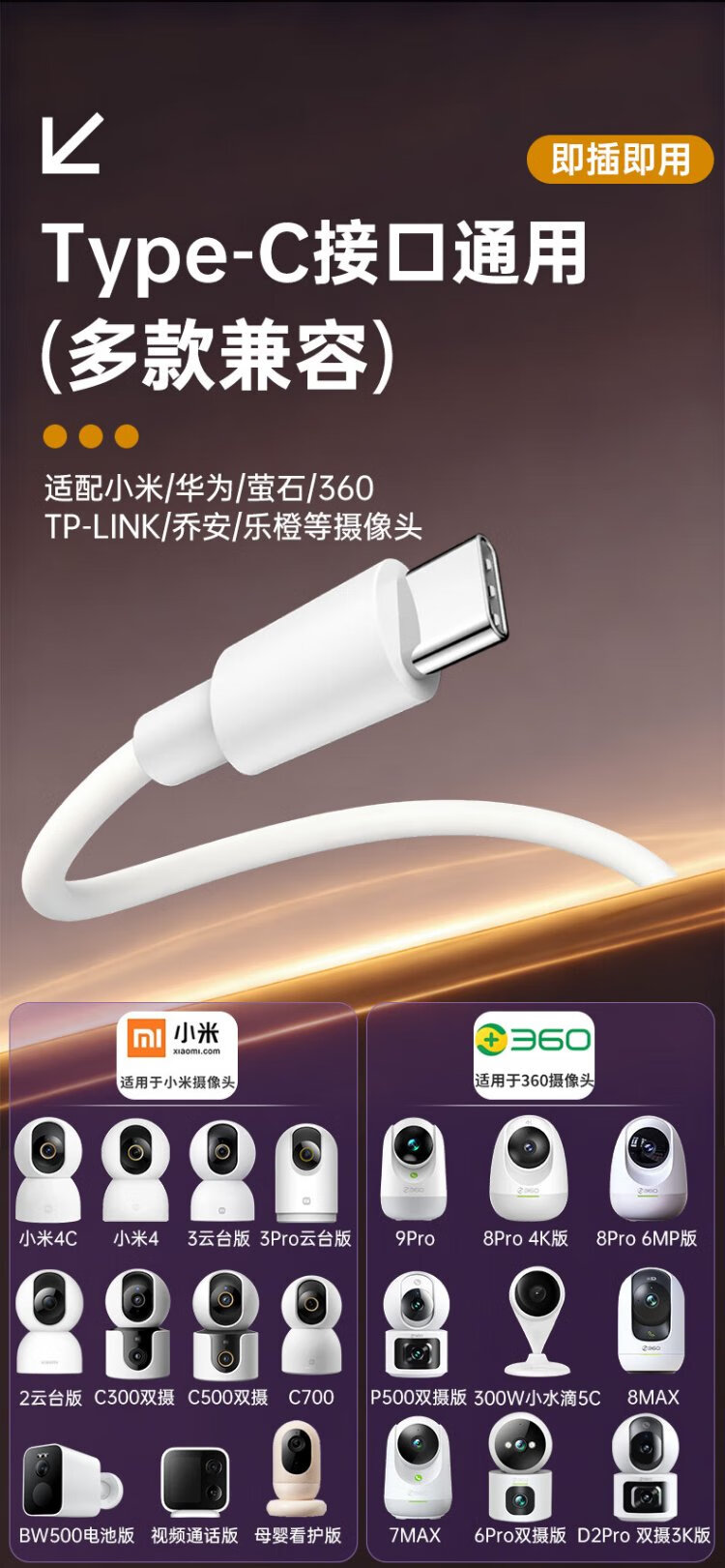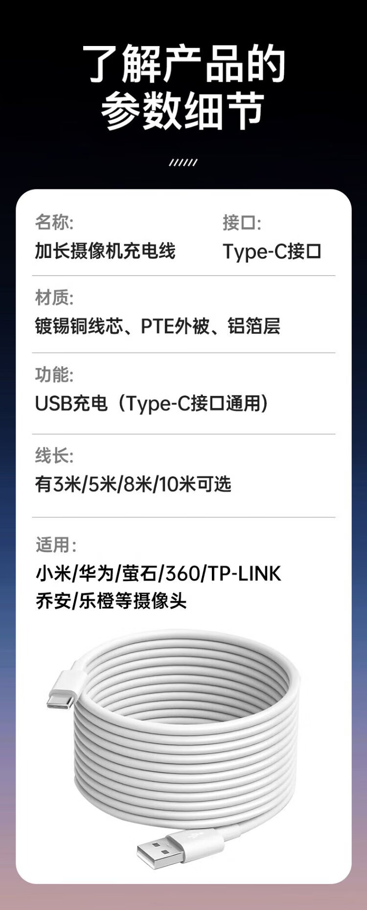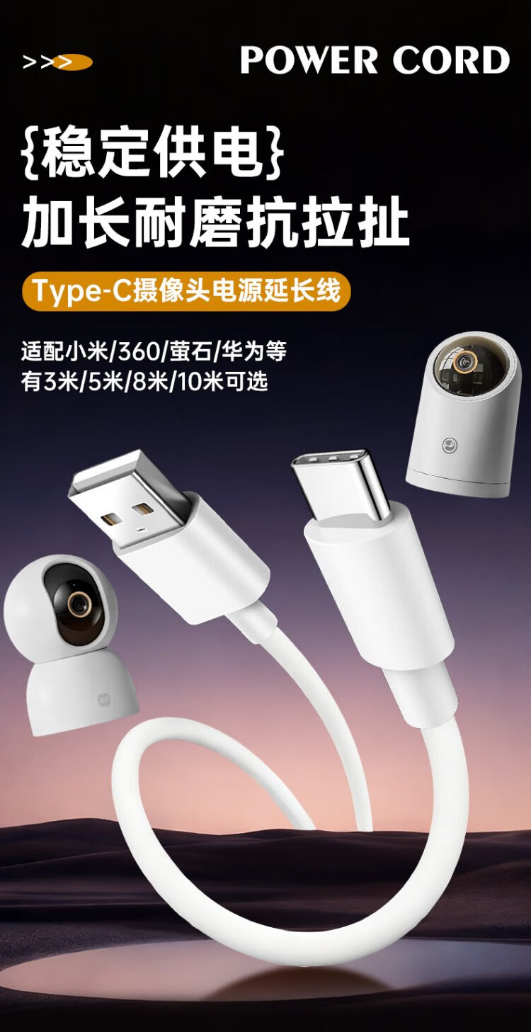 Chaofan adapts to Huawei puffin camera power extension cable 5 meters sparrow egg Max/3/3i/3s/3pro camera monitoring power cord type-c charging cable extension