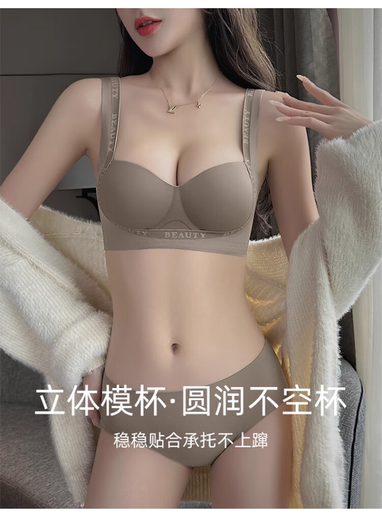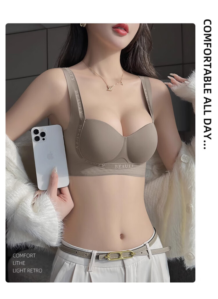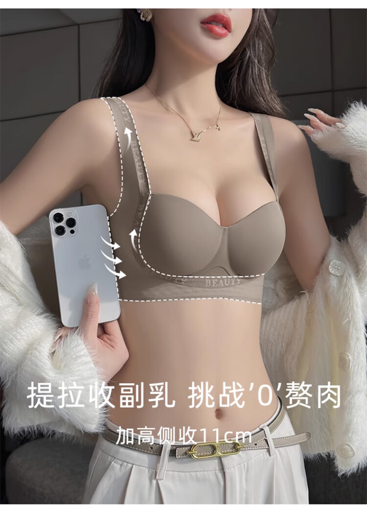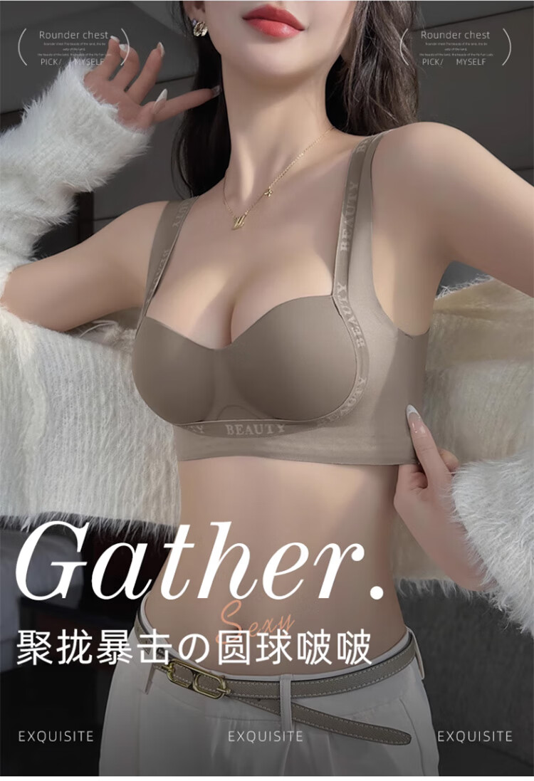 Langsha Underwear Women's Small Breasts Show Bigger Autumn and Winter New Style Push-Up Support Secondary Breasts Anti-Sagging Adjustable Sexy Seamless Bra