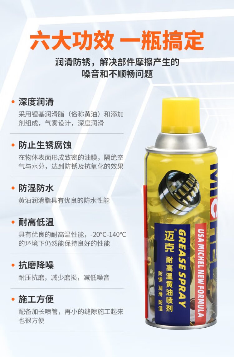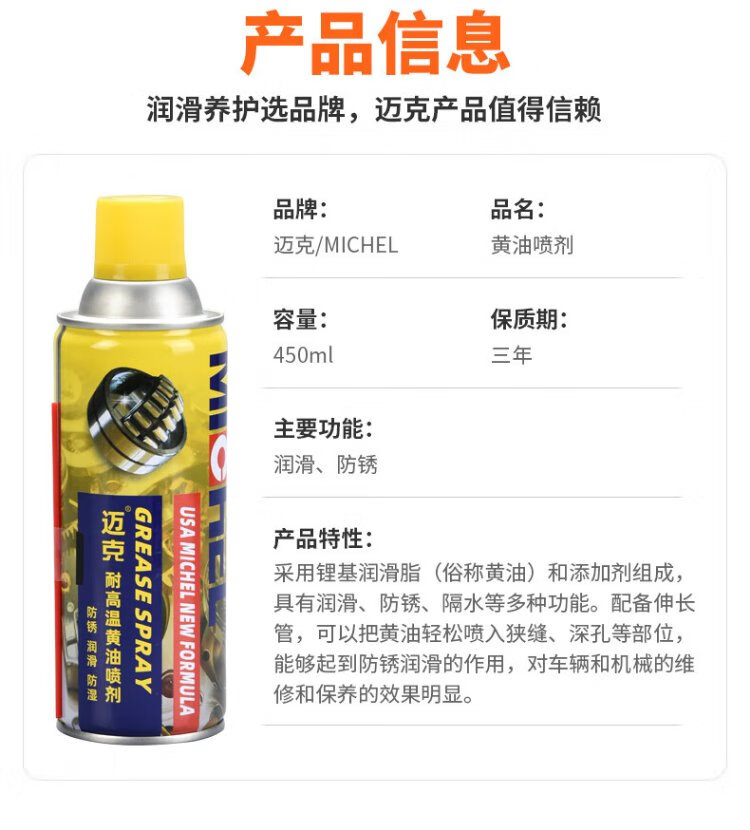 Mike liquid butter spray high temperature resistant door lock bearing gear abnormal noise mechanical lubrication butter grease anti-rust and anti-corrosion 450ml