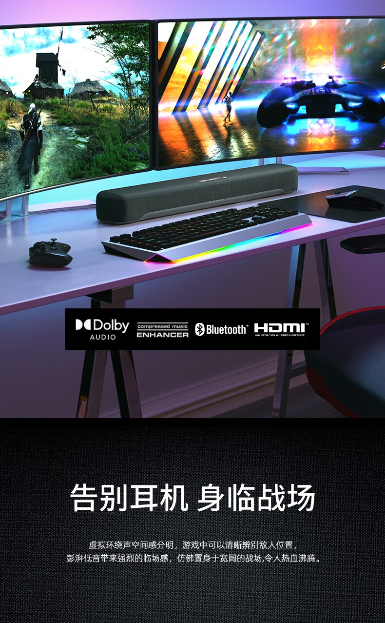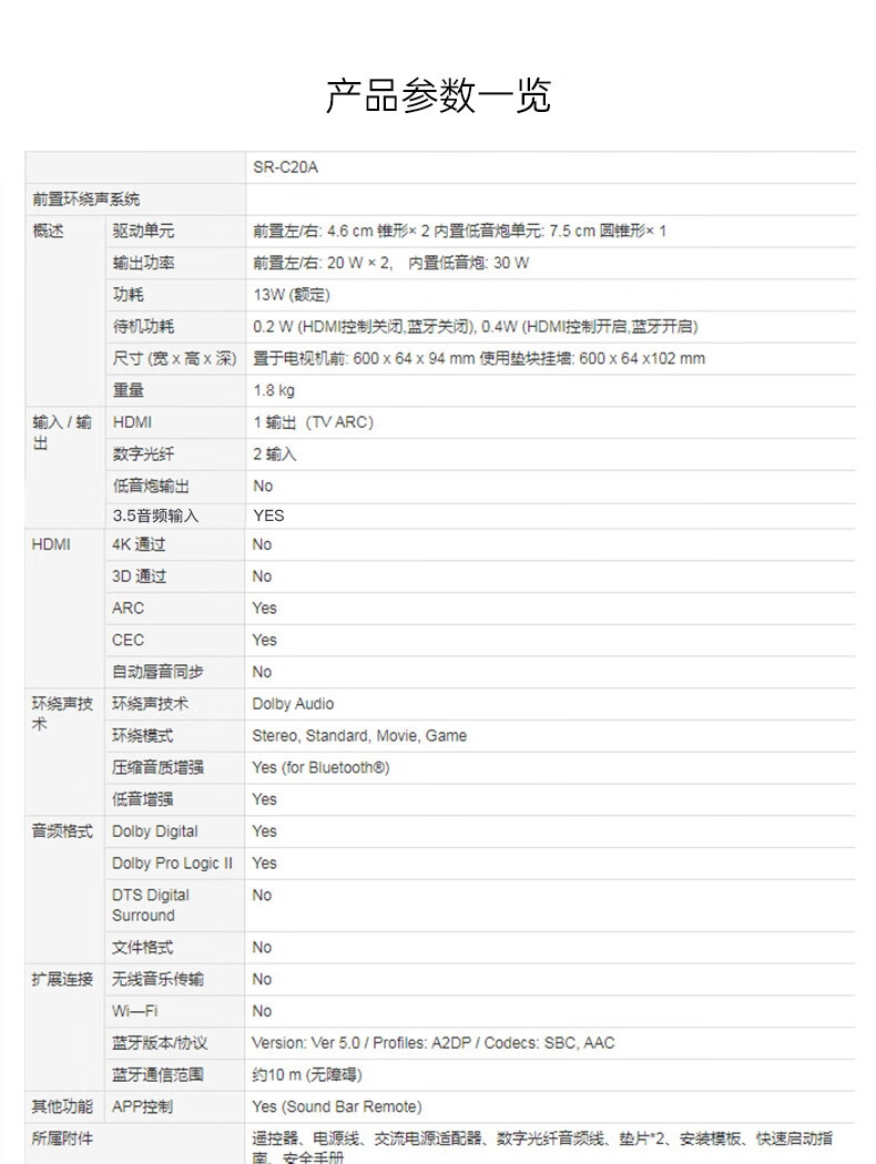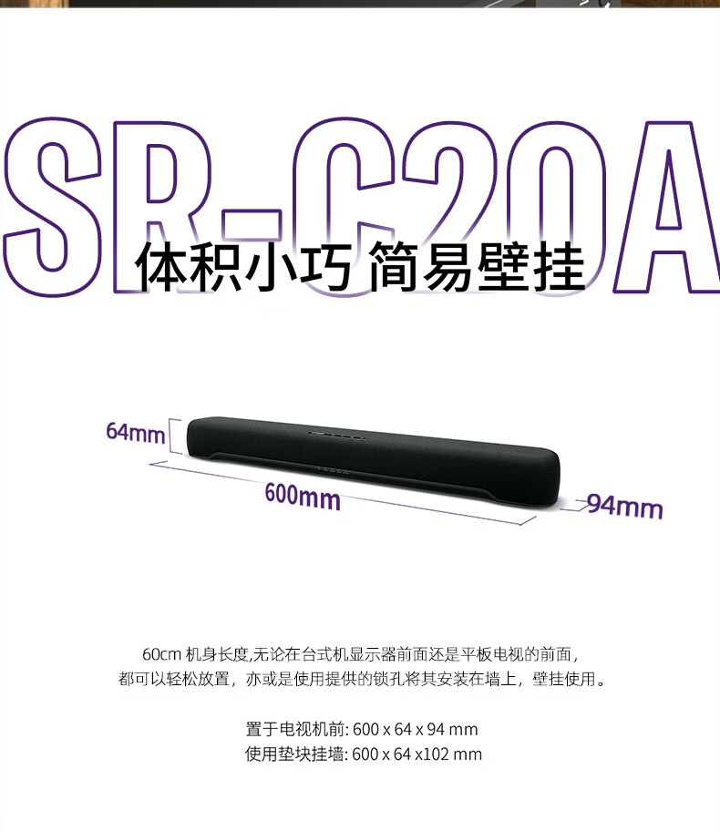 Yamaha SR-C20A Bluetooth Audio Echo Wall Computer Audio Sound Bar TV Virtual 5.1 Channel Surround Game Speaker Black