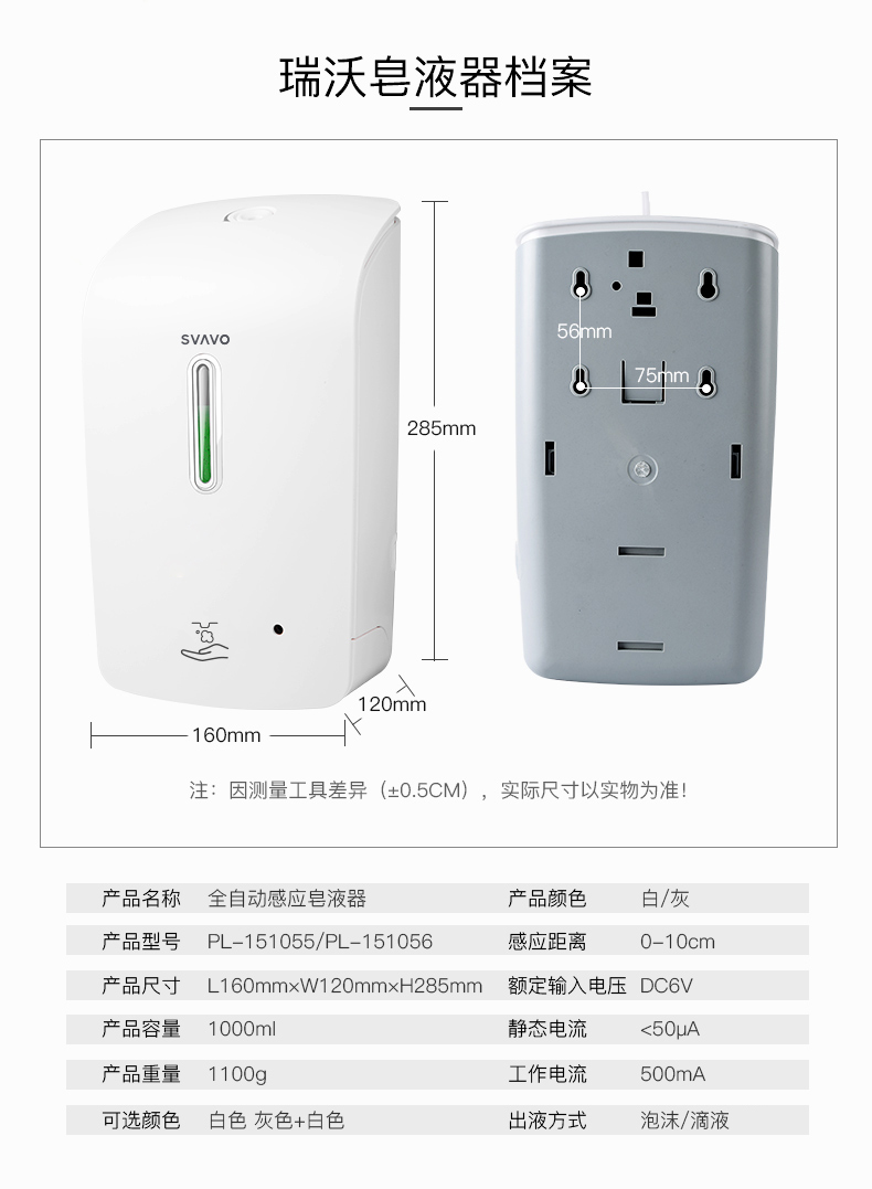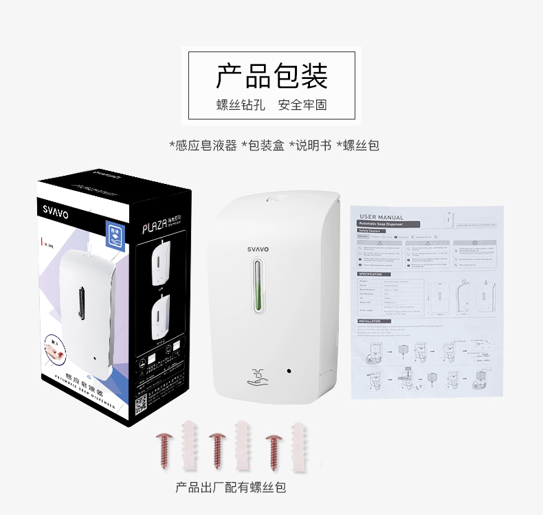 SVAVO sensor soap dispenser commercial automatic mobile phone washing wall-mounted hand sanitizer machine PL-151055 white