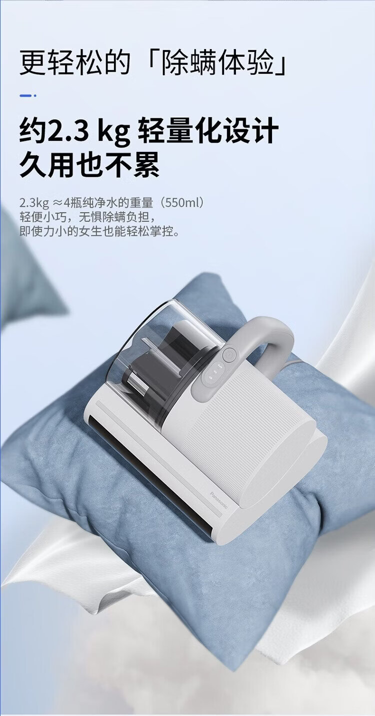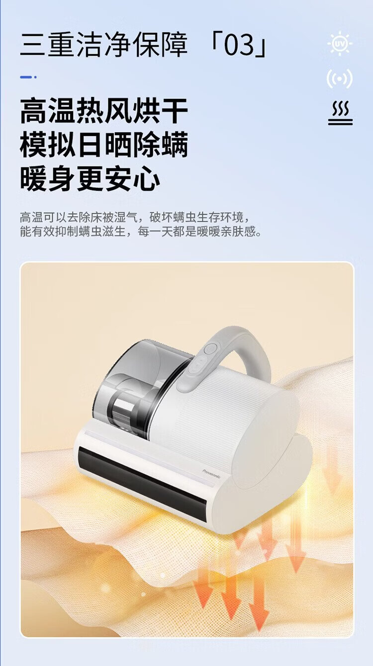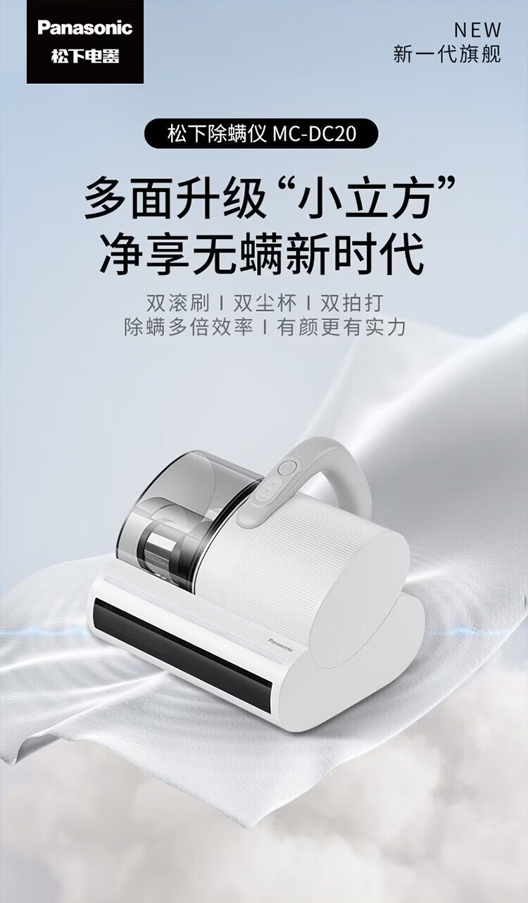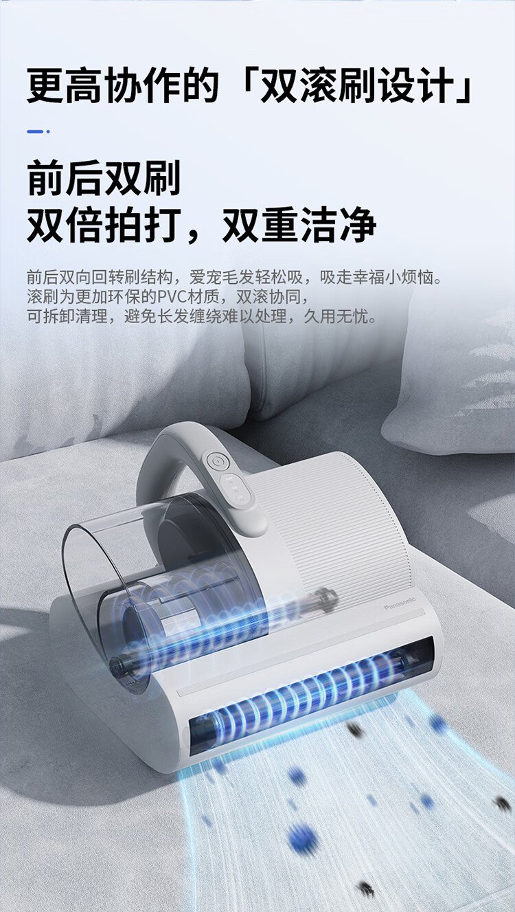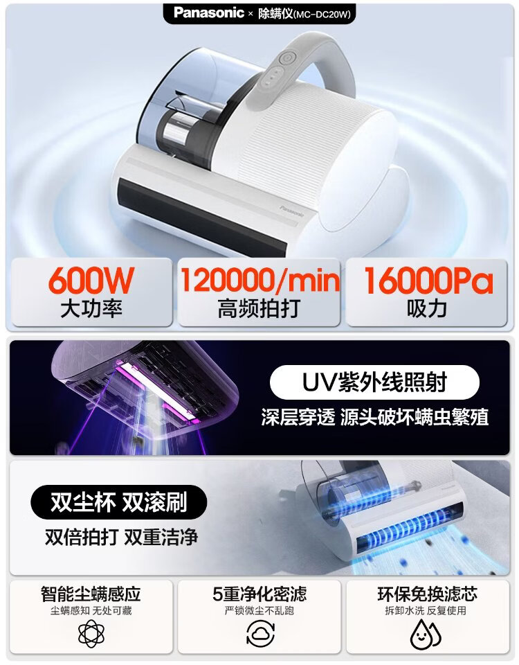 Panasonic cleaning artifact ultrasonic mite remover bed treasure household bed vacuum cleaner large suction ultraviolet sterilization heat drying dehumidification double roller brush double beat double cup MC-DC20W