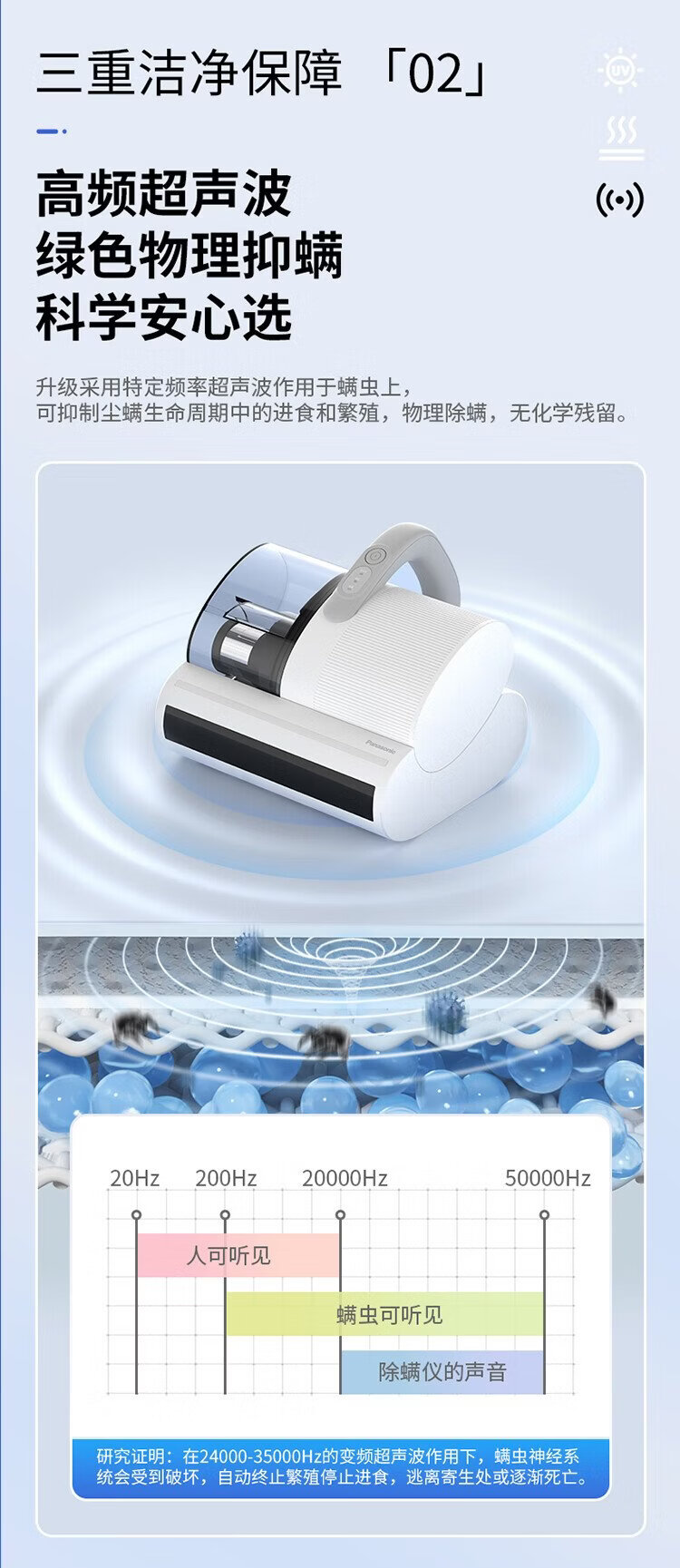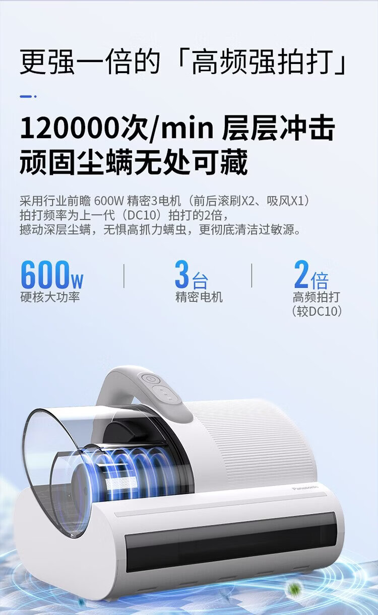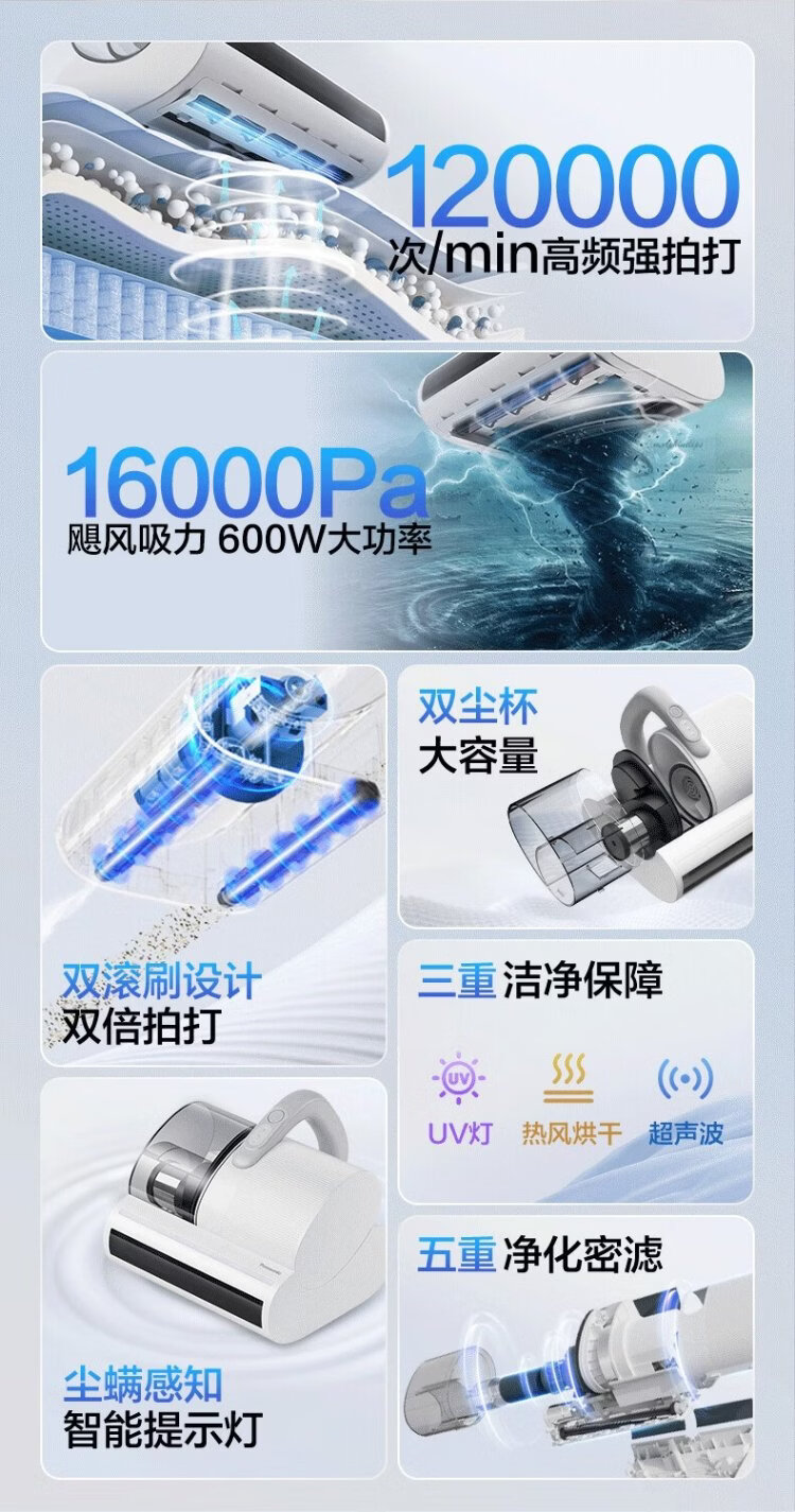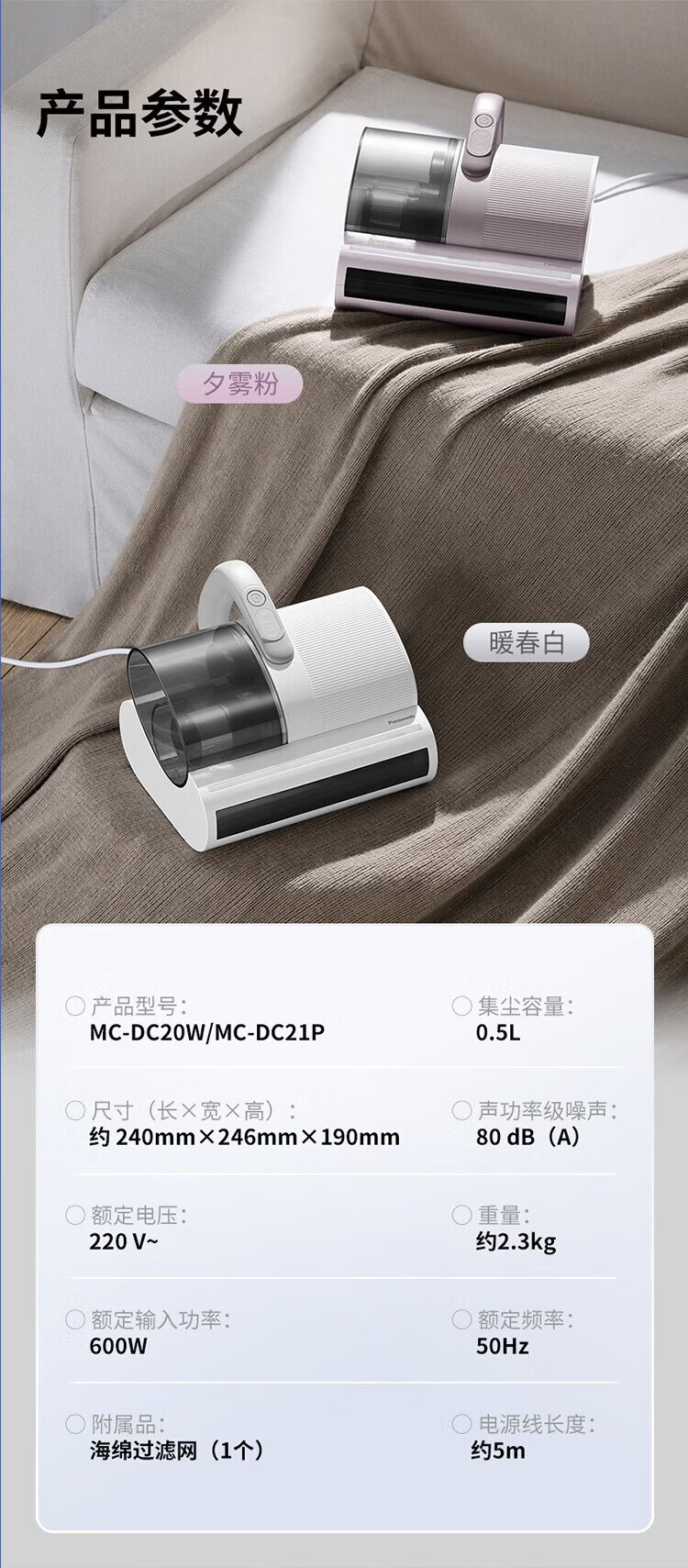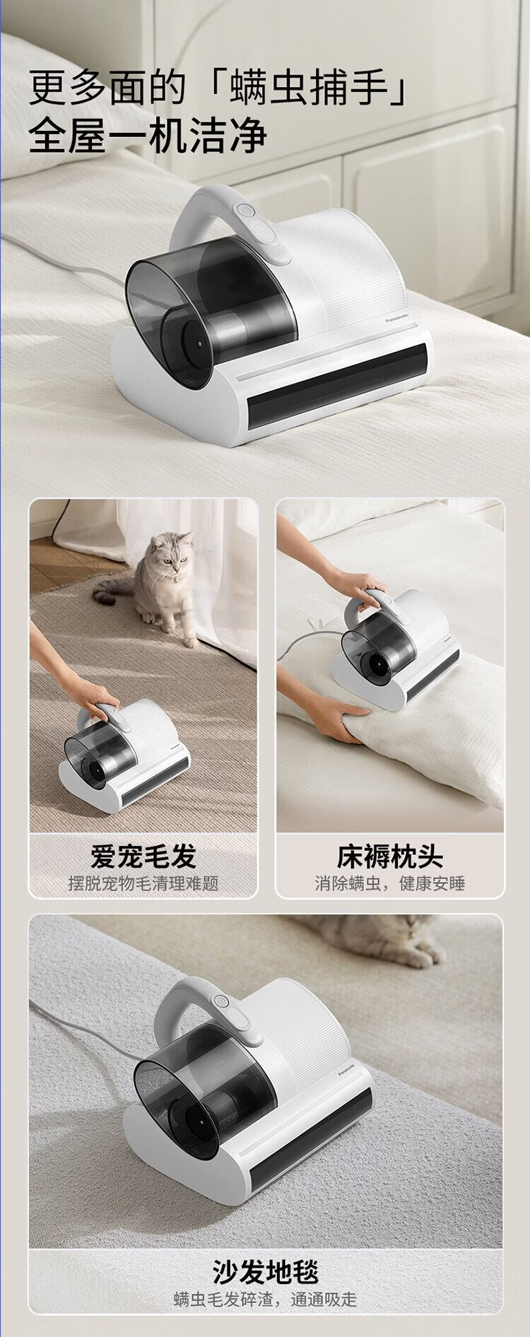 Panasonic cleaning artifact ultrasonic mite remover bed treasure household bed vacuum cleaner large suction ultraviolet sterilization heat drying dehumidification double roller brush double beat double cup MC-DC20W