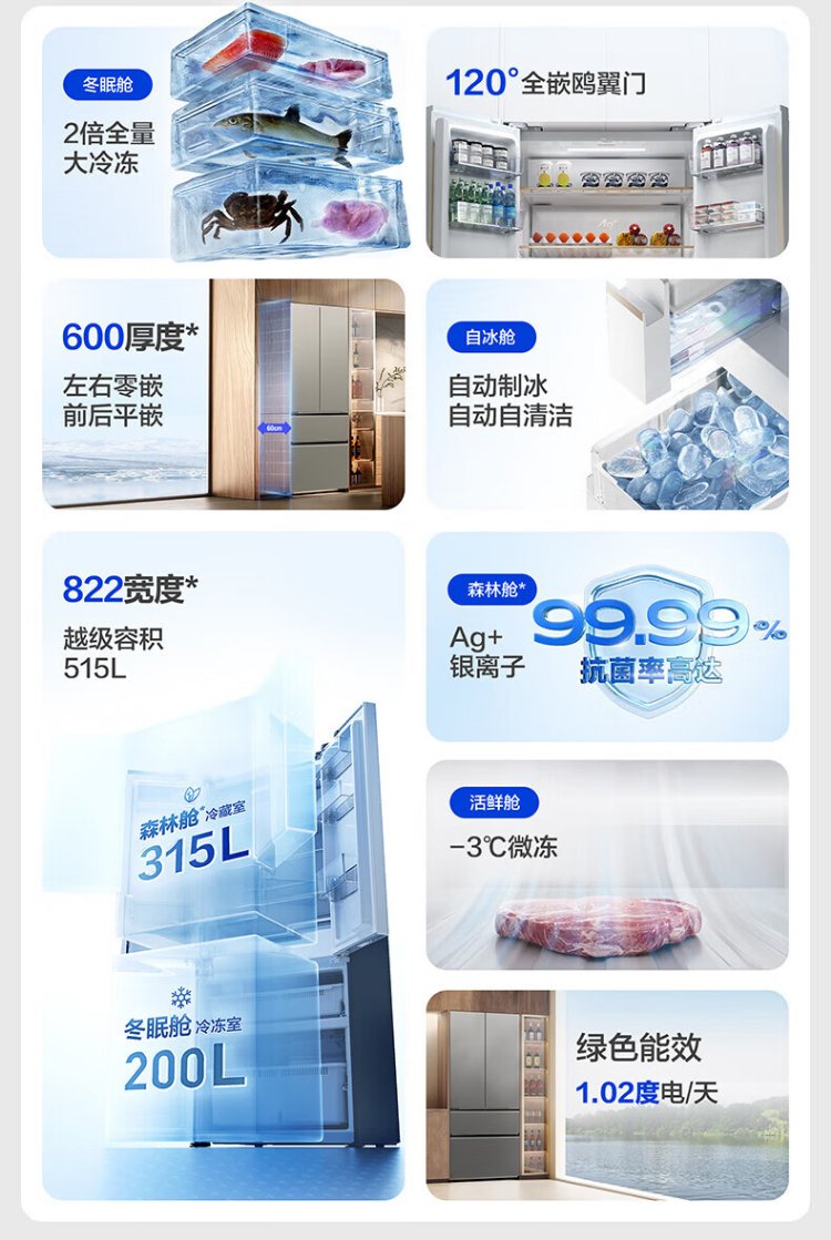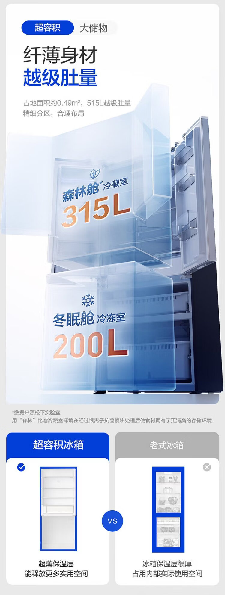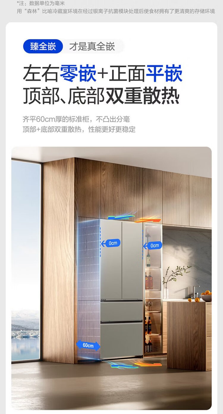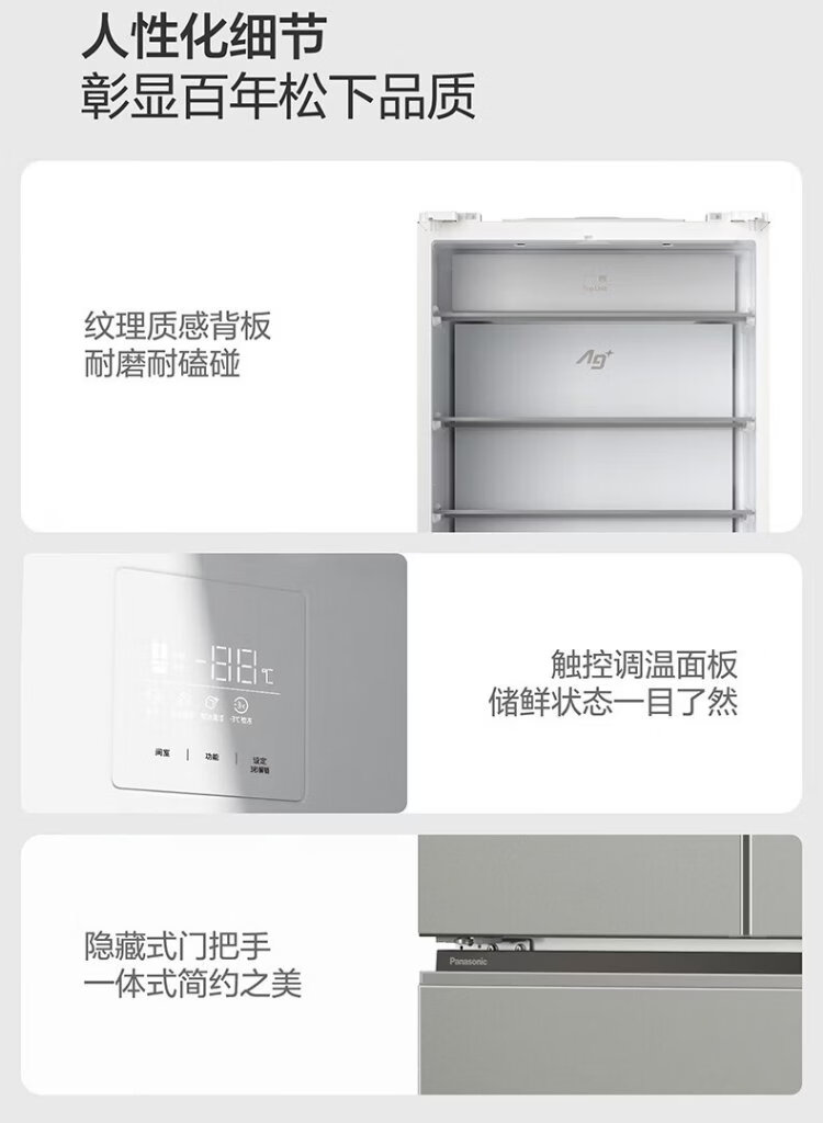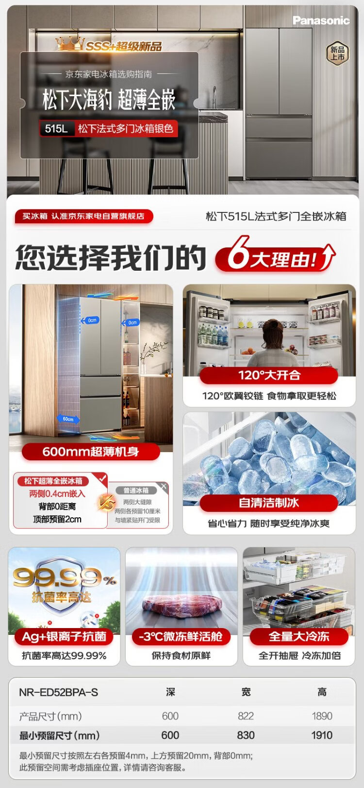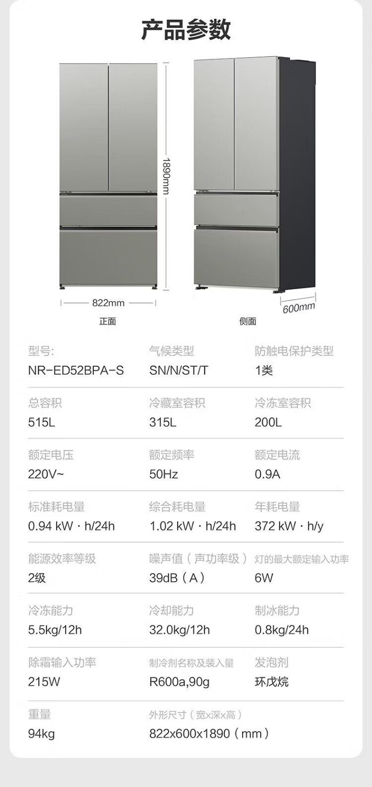 Panasonic 515L French-style multi-door refrigerator ultra-thin zero-embedded automatic ice making silver ion sterilization large seal NR-ED52BPA-S
