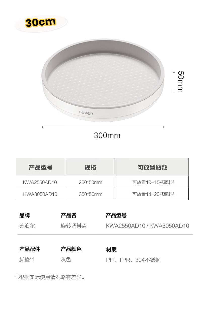SUPOR rotating spice rack storage tray 360-degree multi-functional makeup storage large size KWA3050AD10
