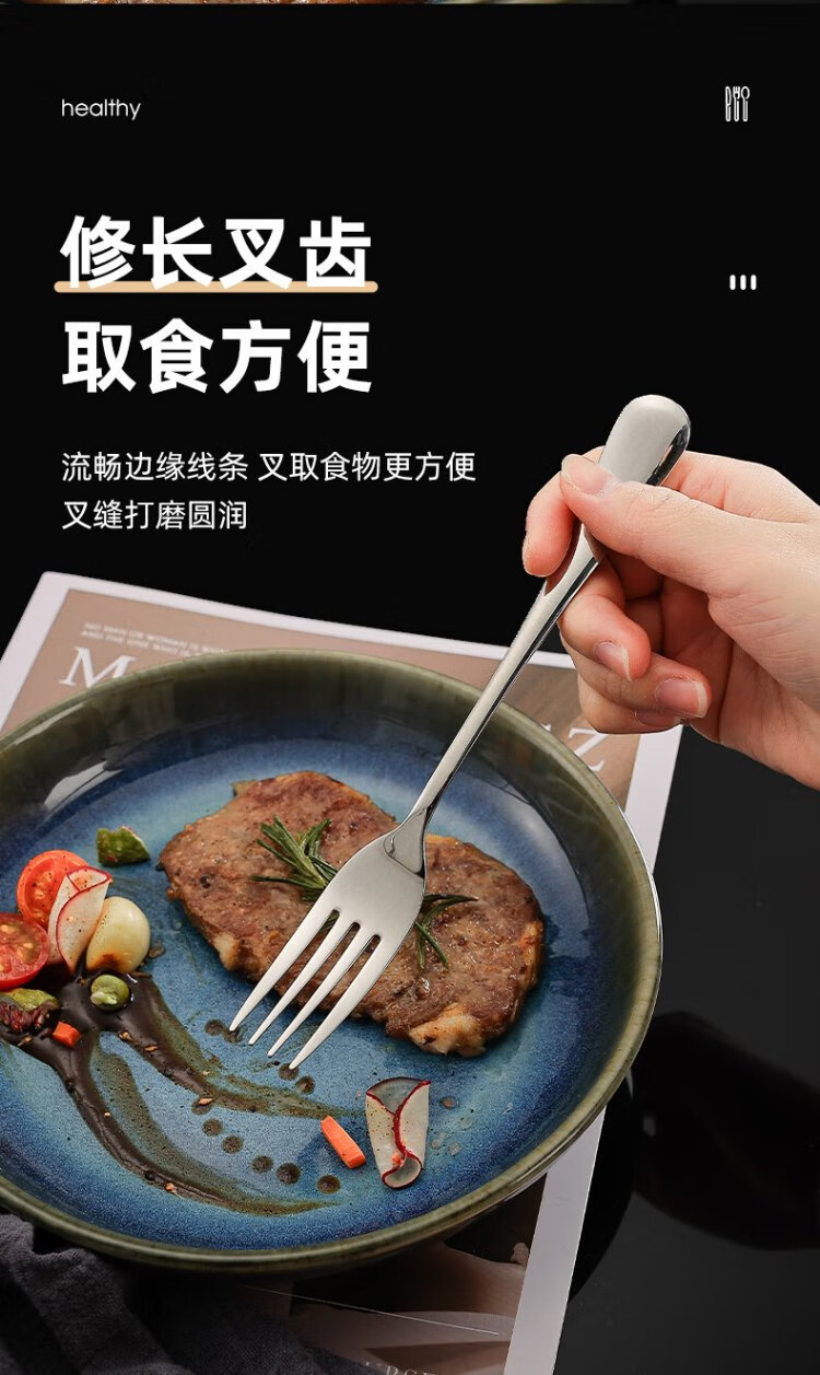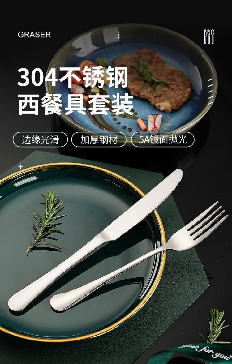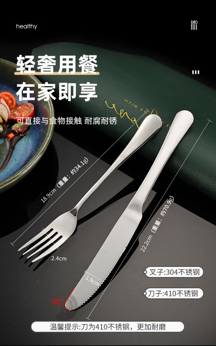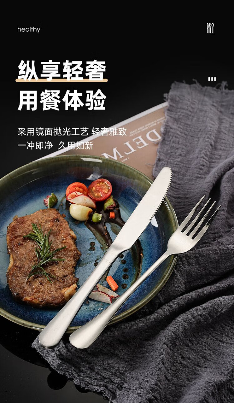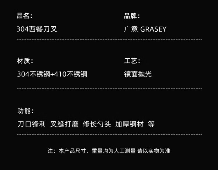 Guangyi 304 stainless steel Western food knife and fork set, steak knife and fork, thickened tableware complete set, 2-piece fork set GY7270