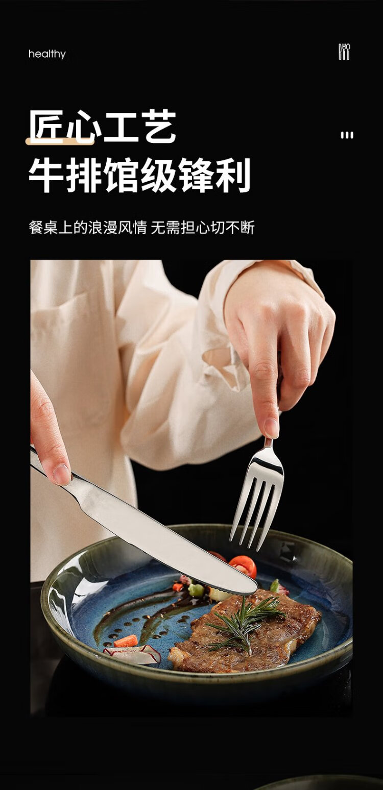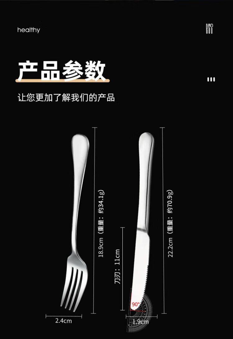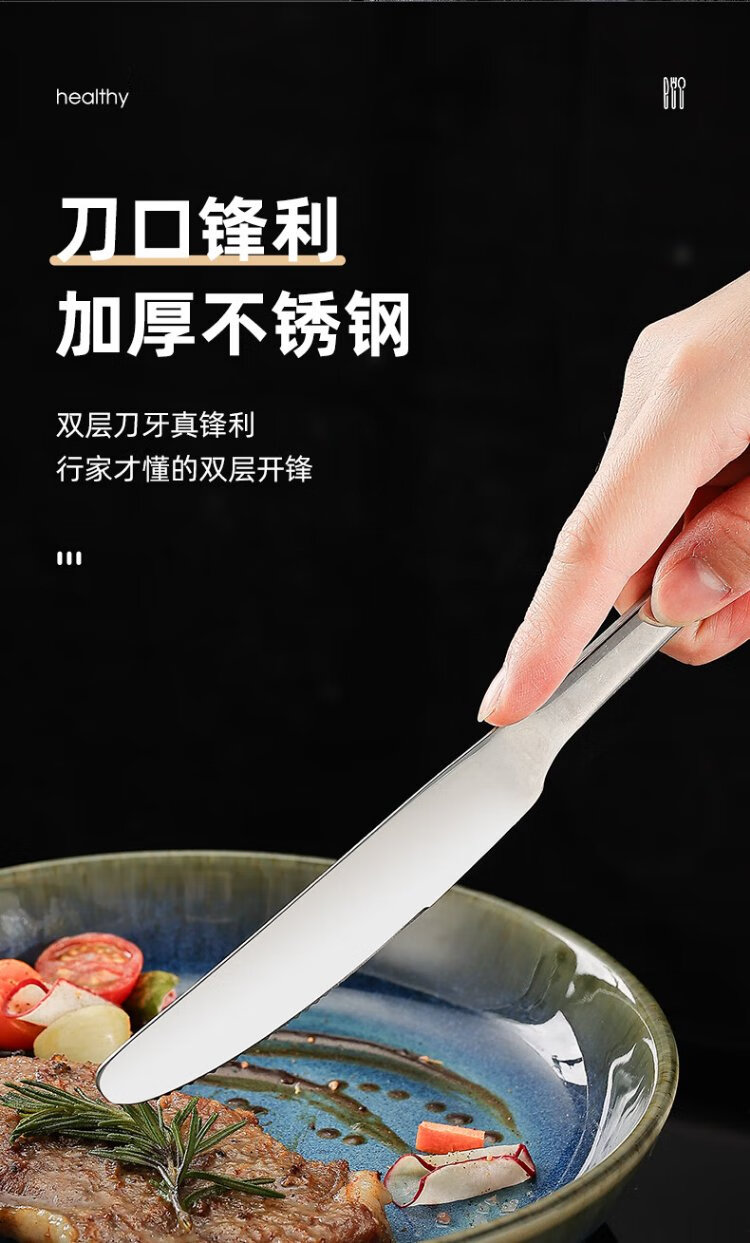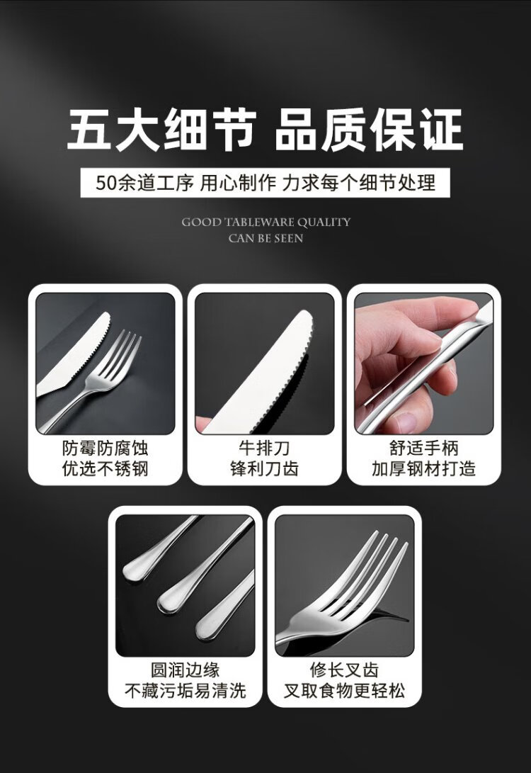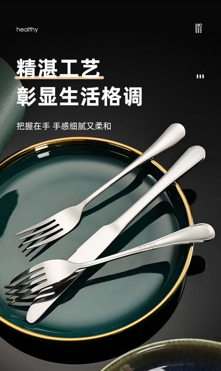 Guangyi 304 stainless steel Western food knife and fork set, steak knife and fork, thickened tableware complete set, 2-piece fork set GY7270
