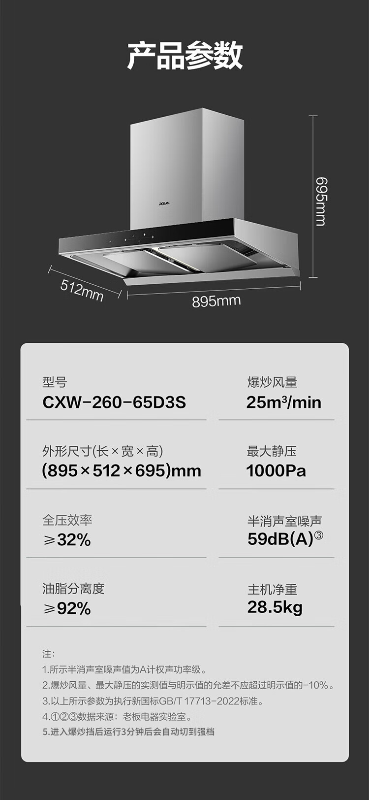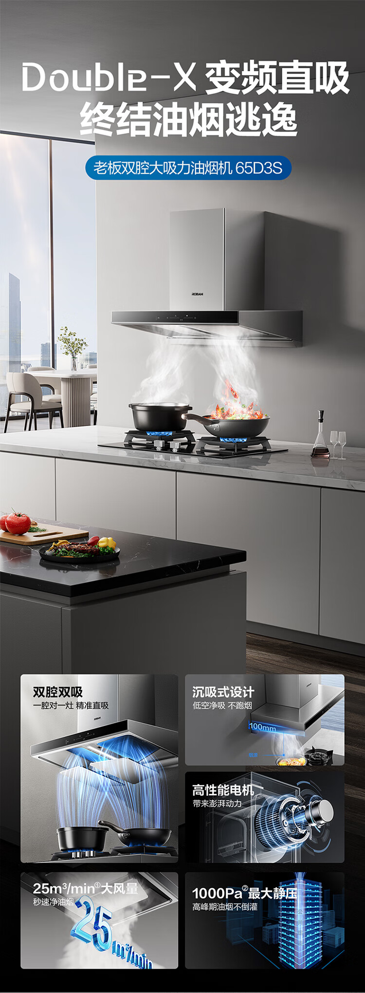 Boss 25 air volume Gemini suction exhaust range hood household European style large suction first level energy efficiency trade-in home installation smoke stove set 65D3S can be used with gas stoves