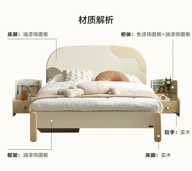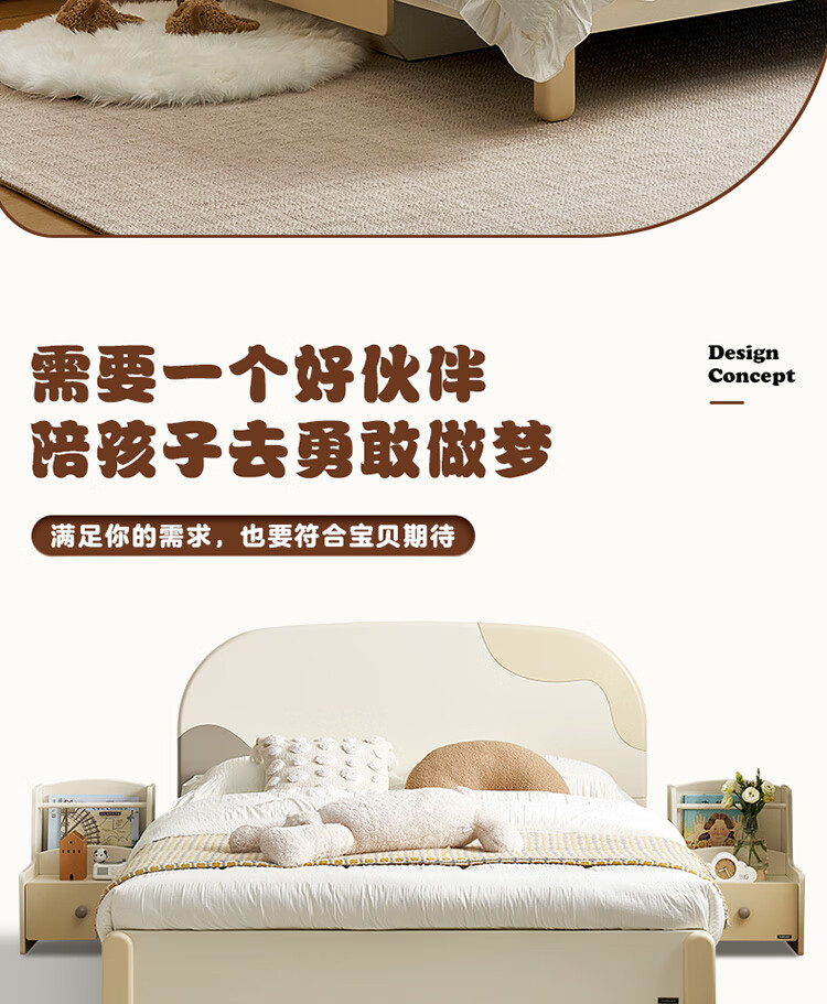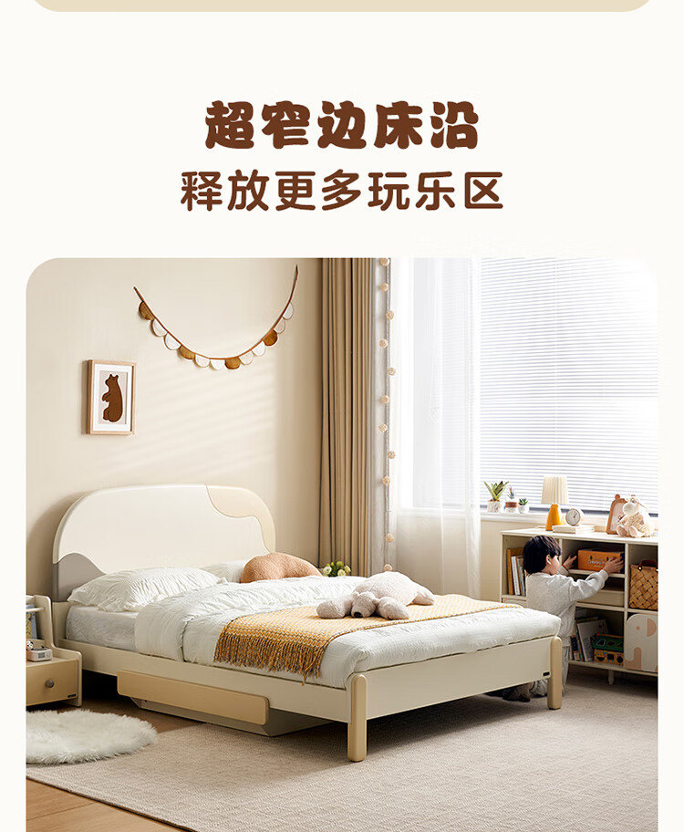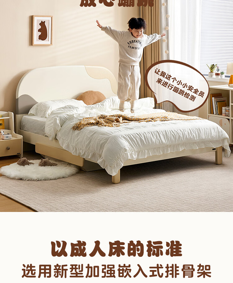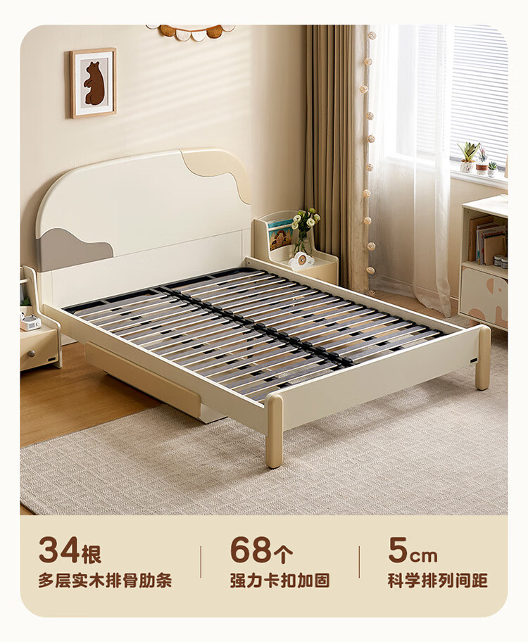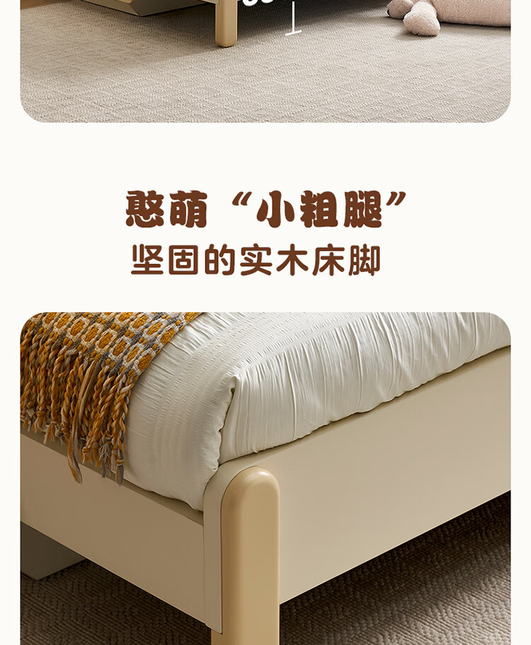 Quanyou Home Modern Simple Furniture Teenage Single Bed 1.5 Meter Cream Style Solid Wood Feet Boys and Girls Secondary Bed
