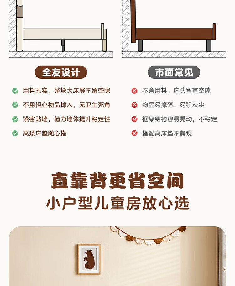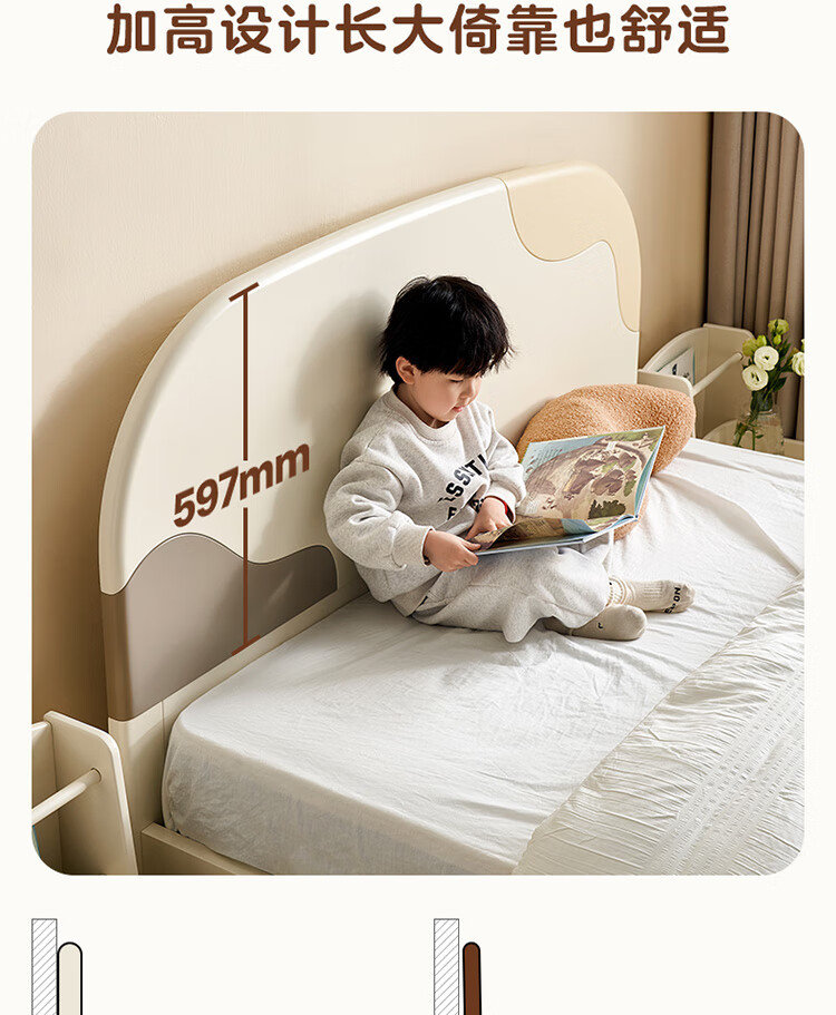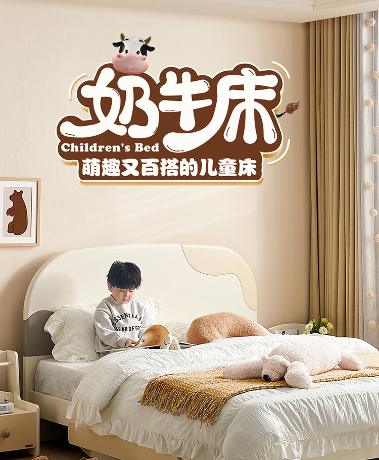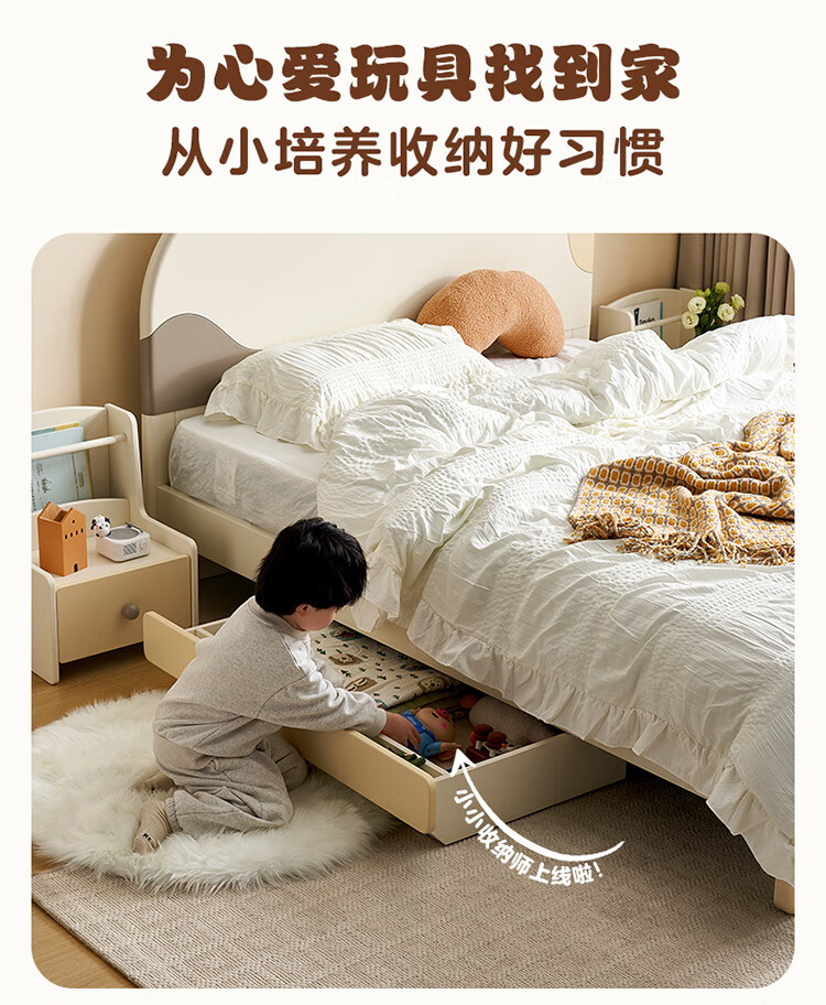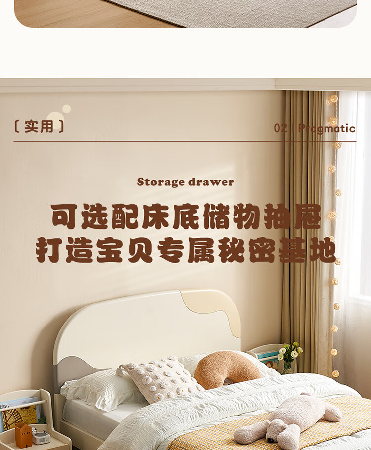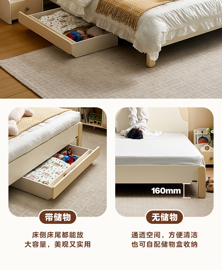 Quanyou Home Modern Simple Furniture Teenage Single Bed 1.5 Meter Cream Style Solid Wood Feet Boys and Girls Secondary Bed