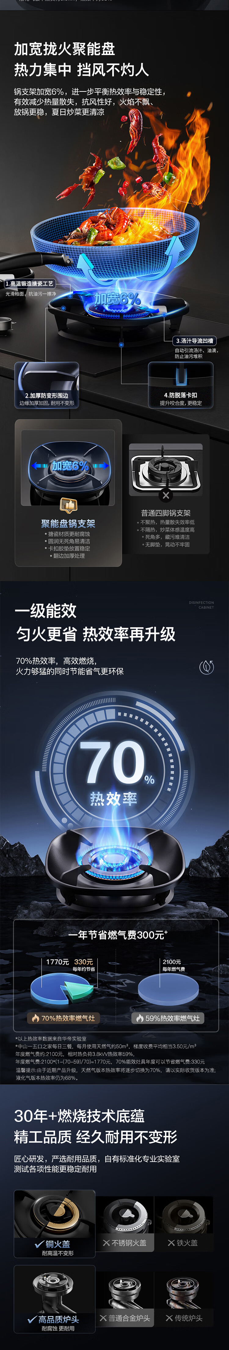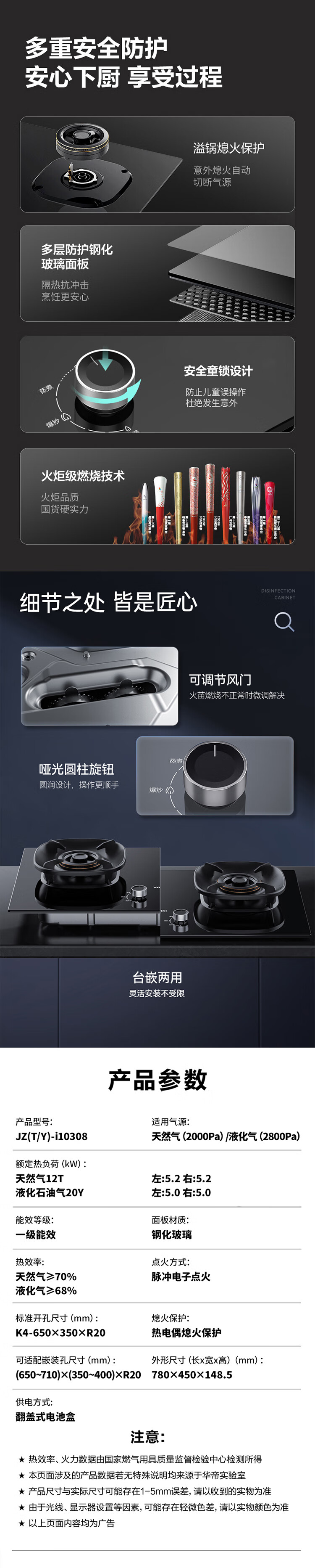 Vantage upgraded 70% thermal efficiency gas stove natural gas stove household embedded 5.2kW fierce fire stove trade-in gas stove double stove i10308