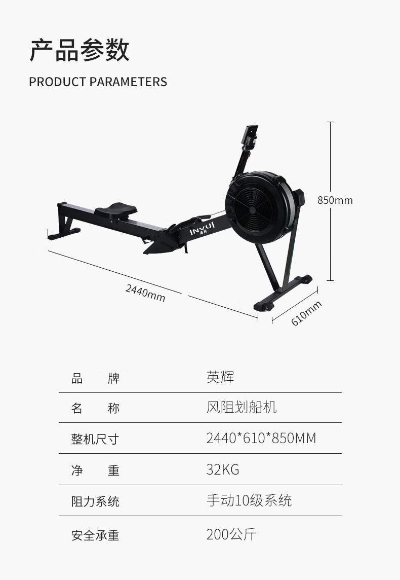 INVUI smart wind resistance rowing machine gym commercial professional silent indoor home sports equipment with adjustable resistance