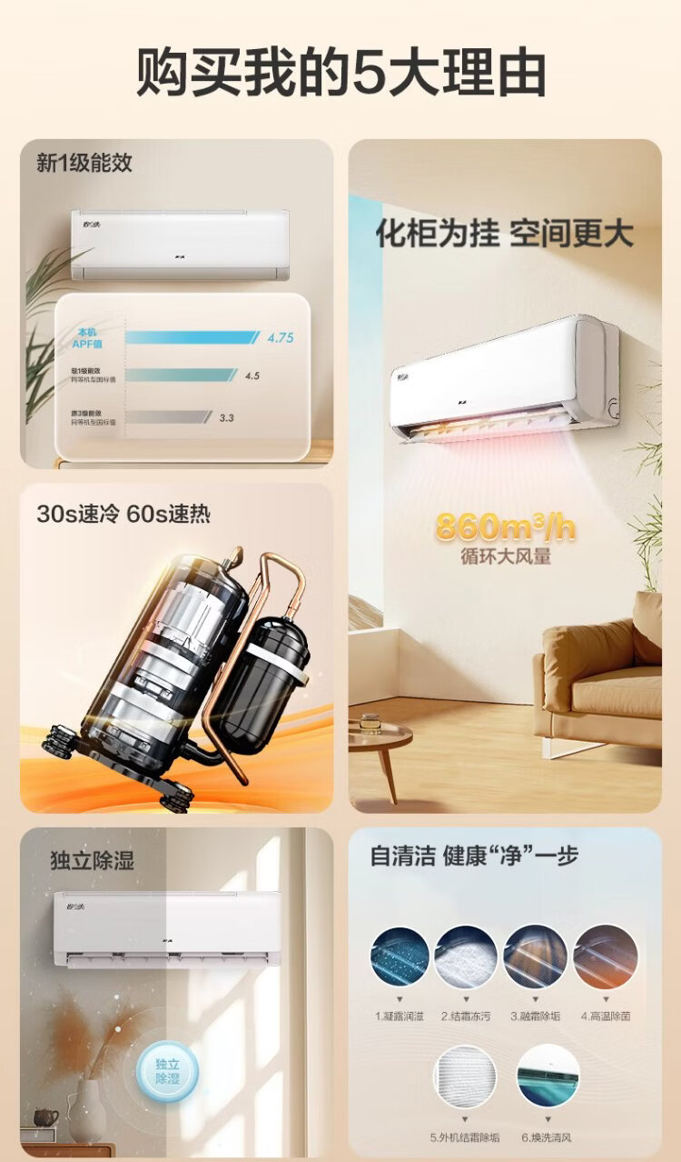 Oaks Air Conditioner Power Saver 2 HP New Level Energy Efficiency Inverter Heating and Cooling Copper Tube Air Conditioner Living Room Energy Saving Anti-Direct Blowing National Subsidy KFR-46GW/BpR3AQK1(B1)