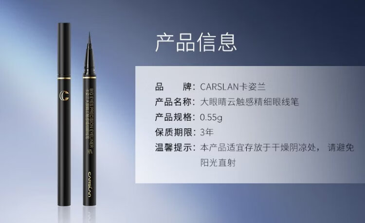 Carslan Big Eyes Qingyun Touch Fine Eyeliner Waterproof, Sweatproof, Non-smudged, Easy to Color for Novices 0.55g New Year Gift