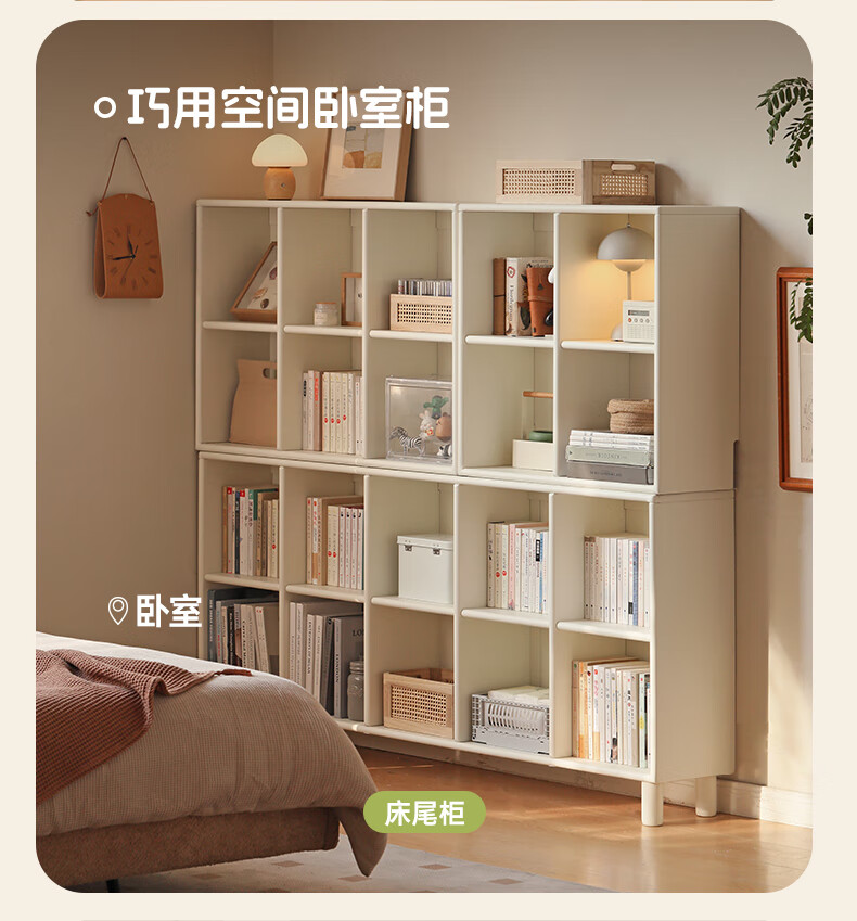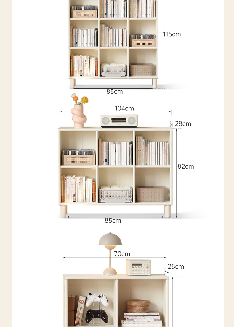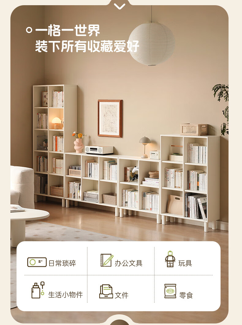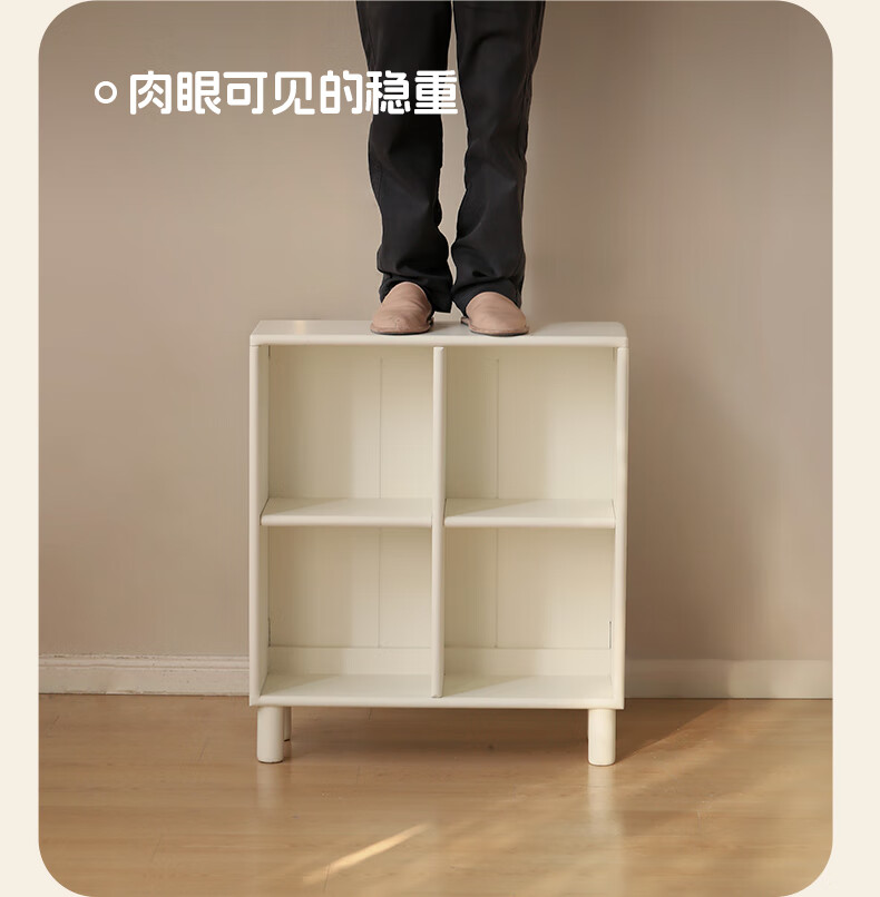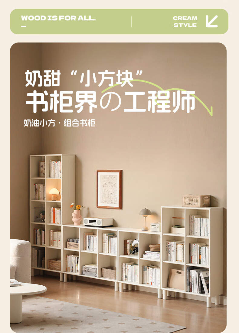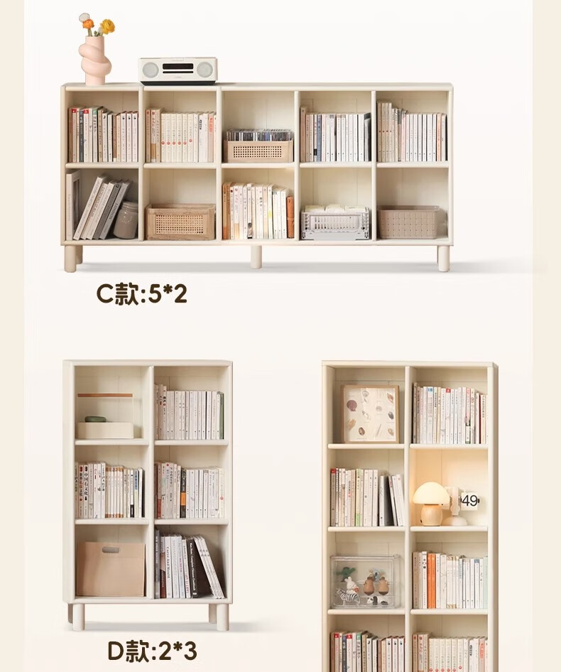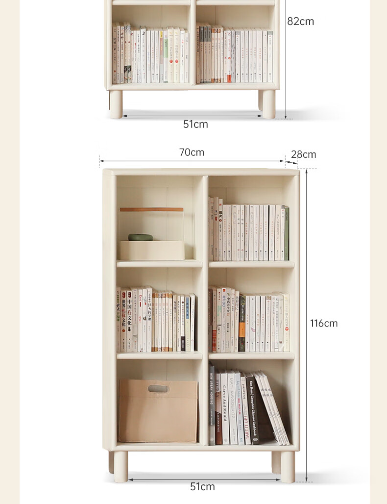 Genji Muyu solid wood bookshelf white cream style study room bookcase grid cabinet wall display rack 0.7 meter bookshelf (2*2 grid)