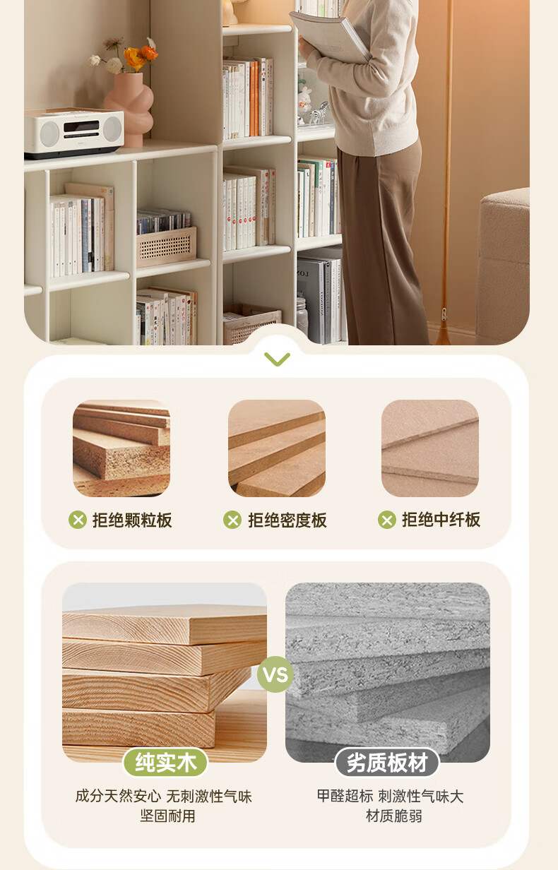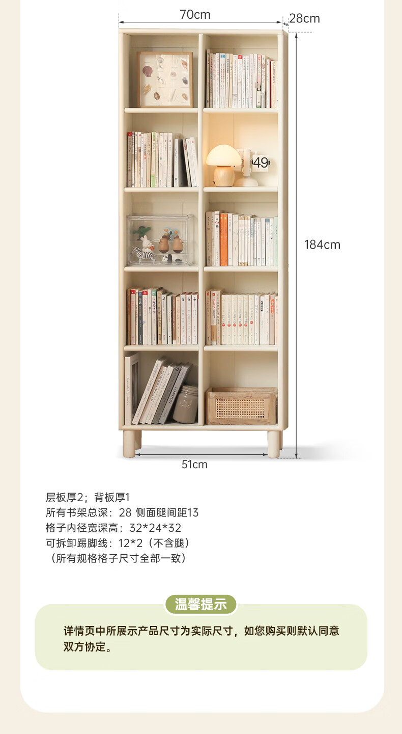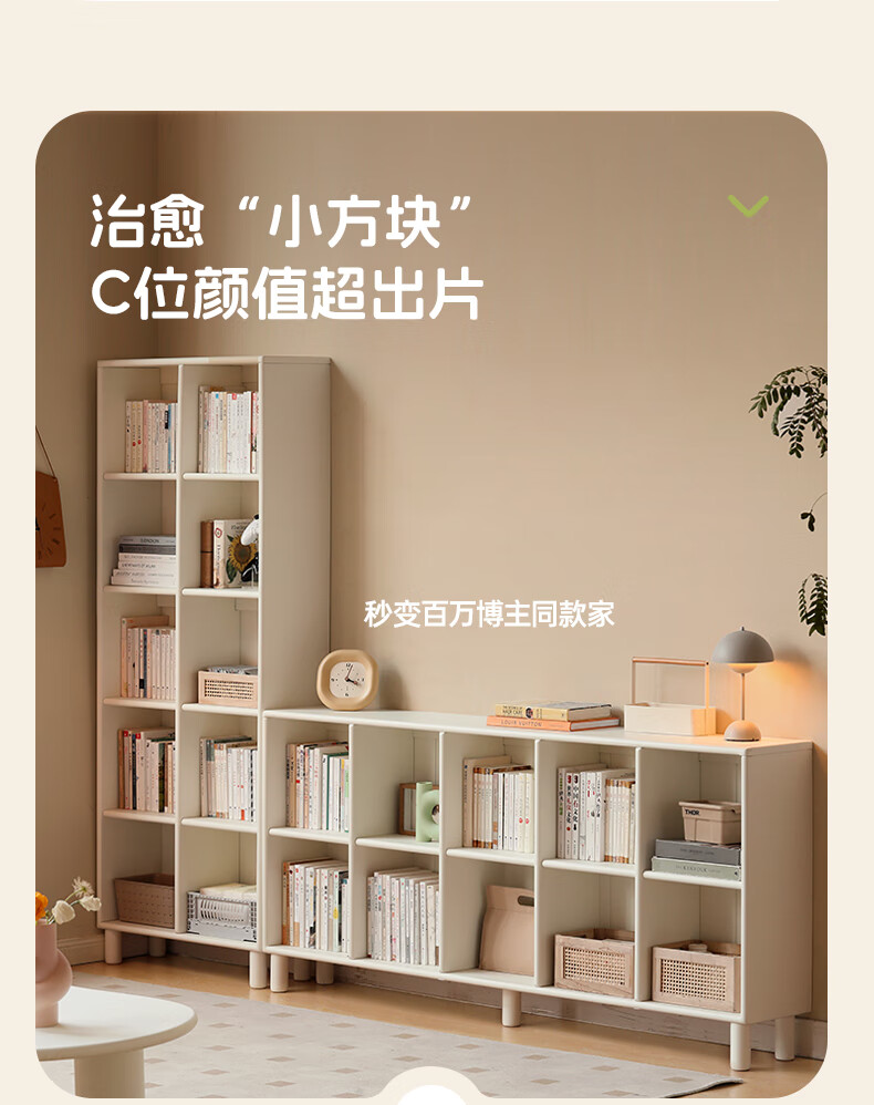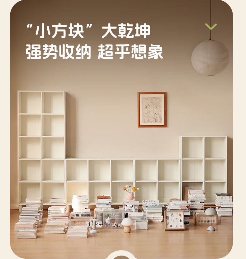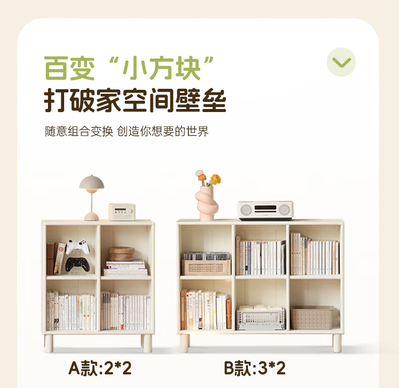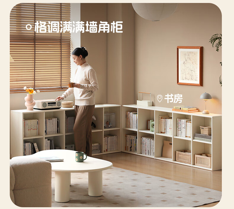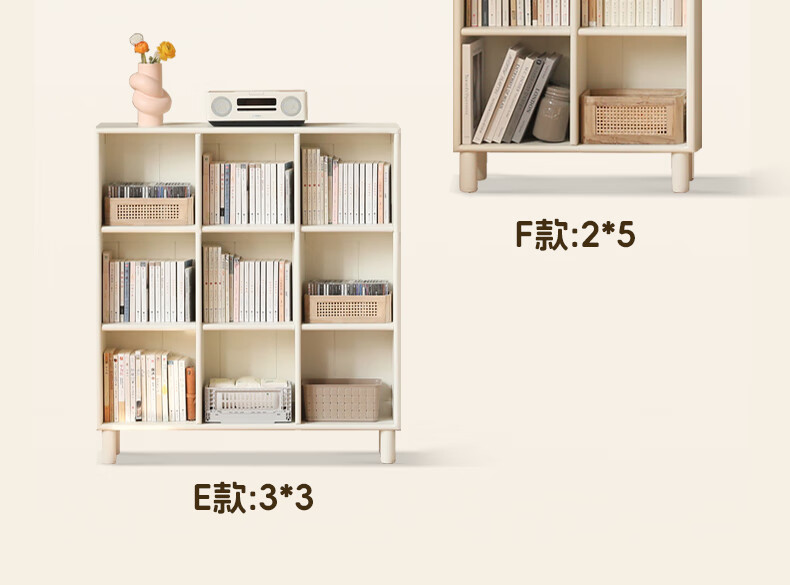 Genji Muyu solid wood bookshelf white cream style study room bookcase grid cabinet wall display rack 0.7 meter bookshelf (2*2 grid)