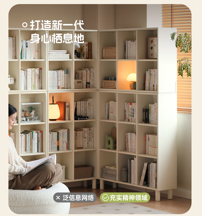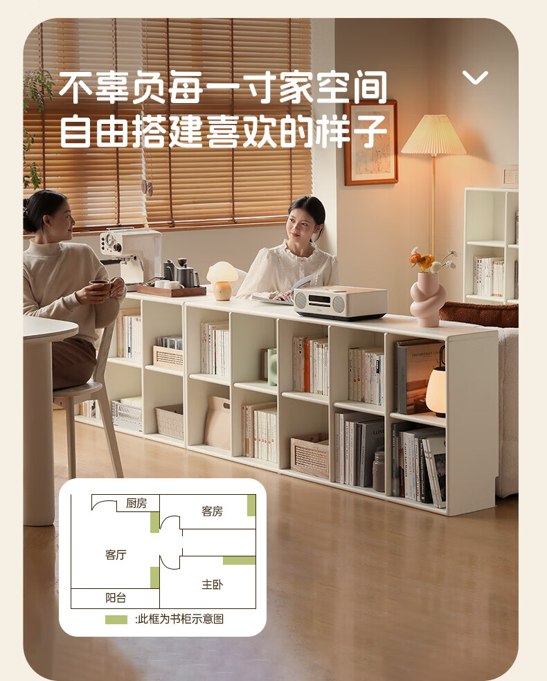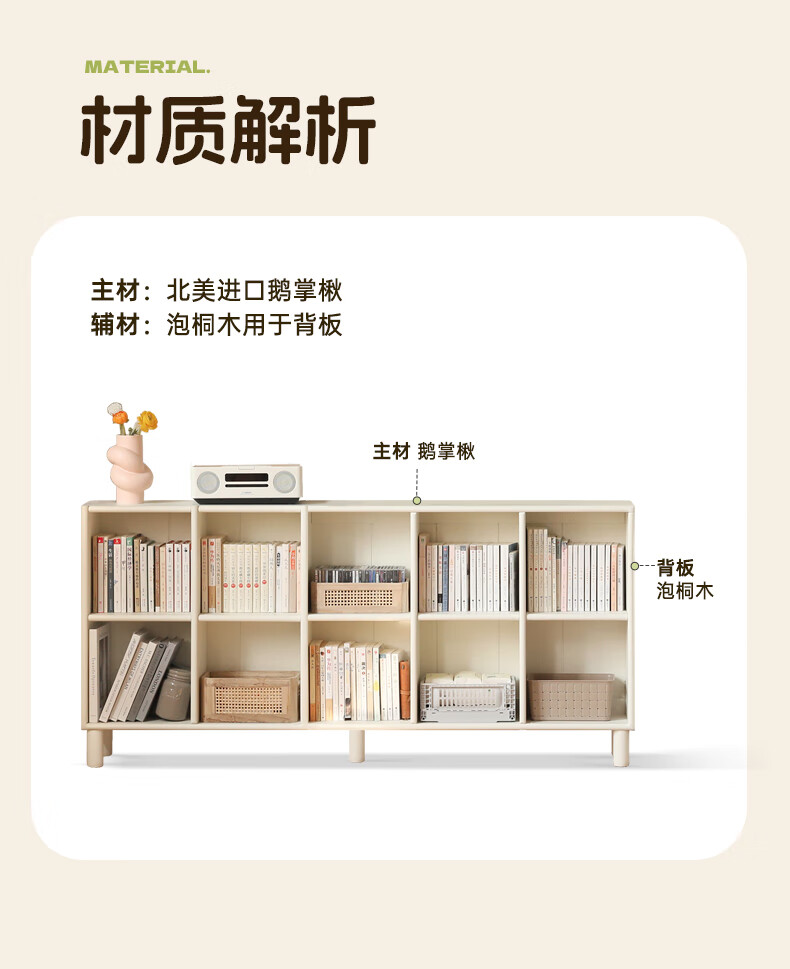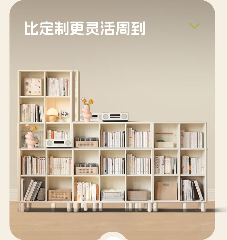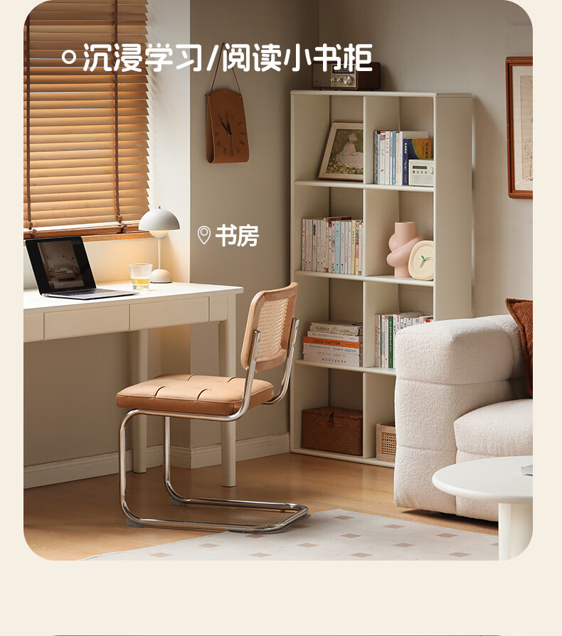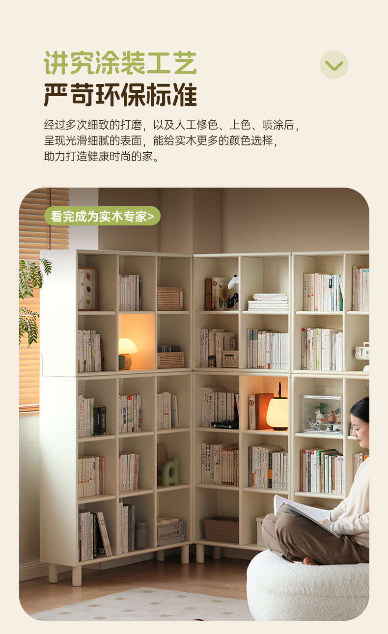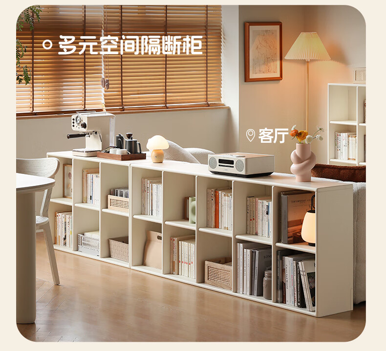 Genji Muyu solid wood bookshelf white cream style study room bookcase grid cabinet wall display rack 0.7 meter bookshelf (2*2 grid)