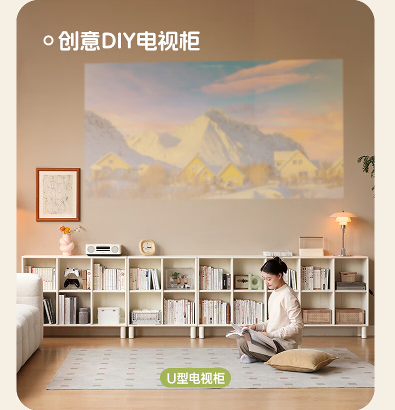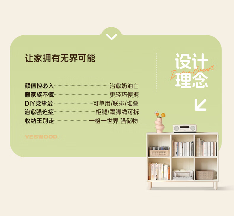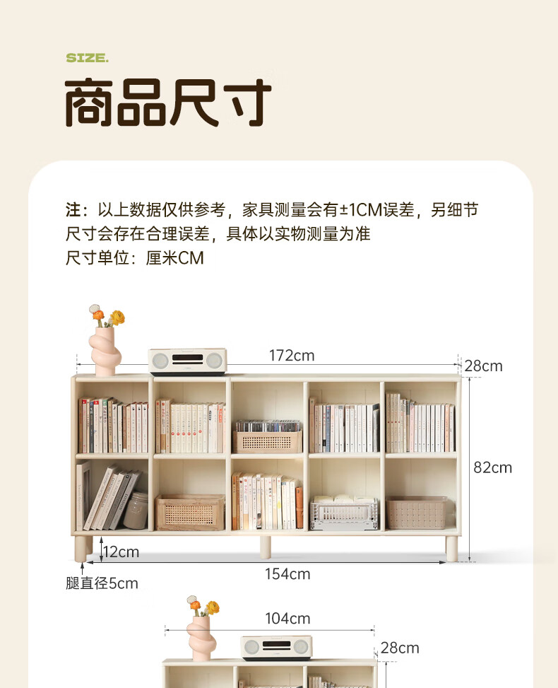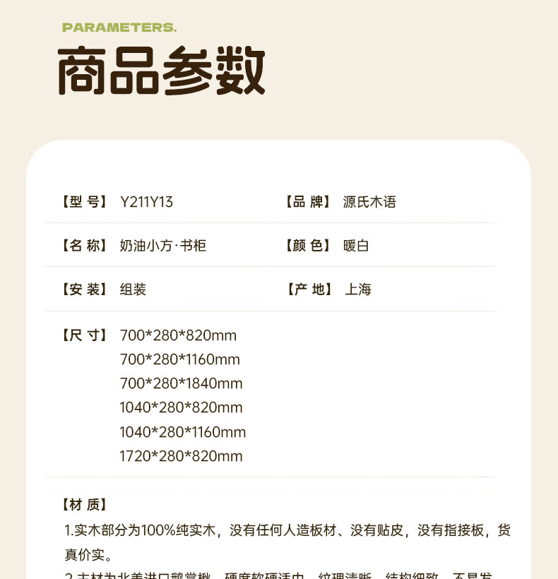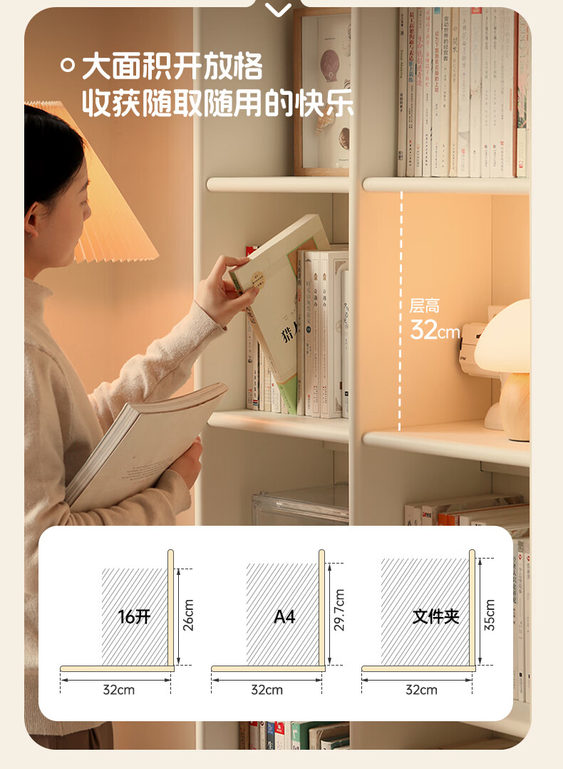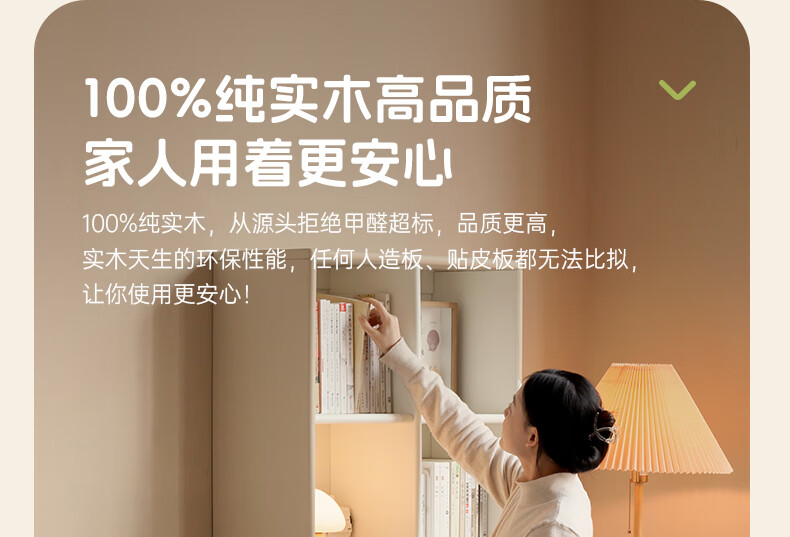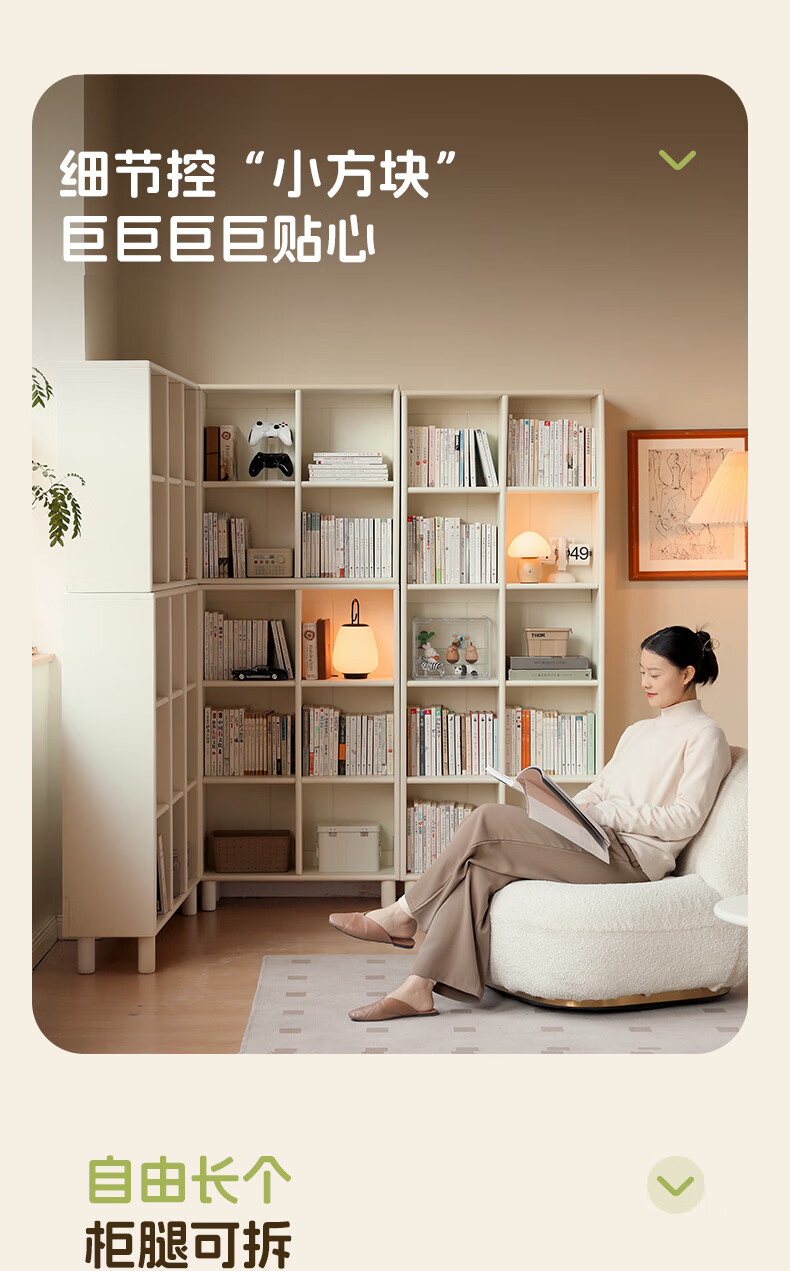 Genji Muyu solid wood bookshelf white cream style study room bookcase grid cabinet wall display rack 0.7 meter bookshelf (2*2 grid)
