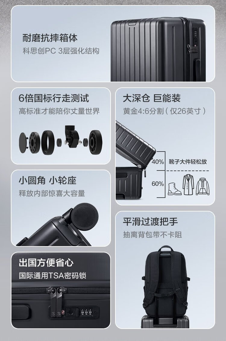 Boundless suitcase made in Tokyo, German PC men's and women's trolley case, boarding suitcase, leather suitcase, graphite gray 20 inches