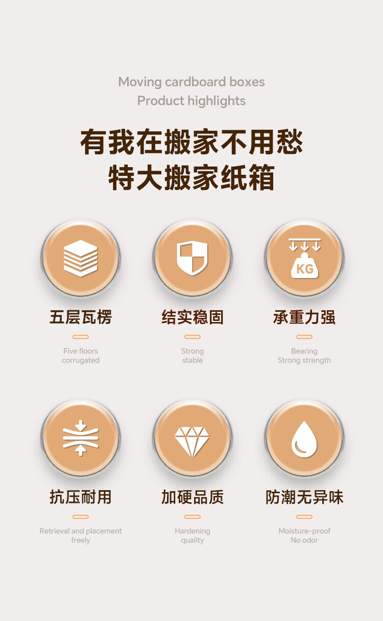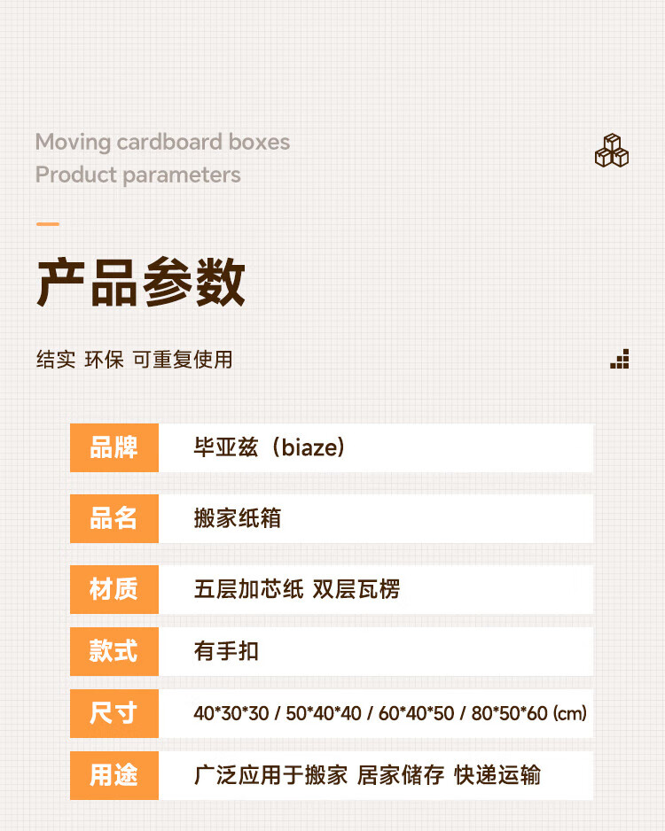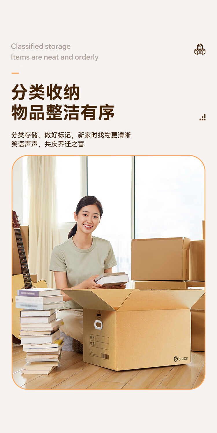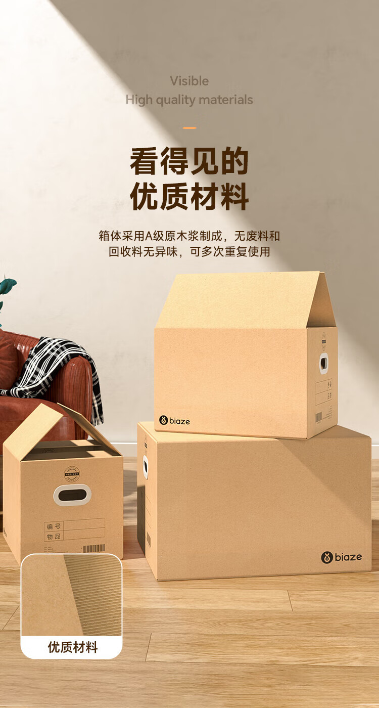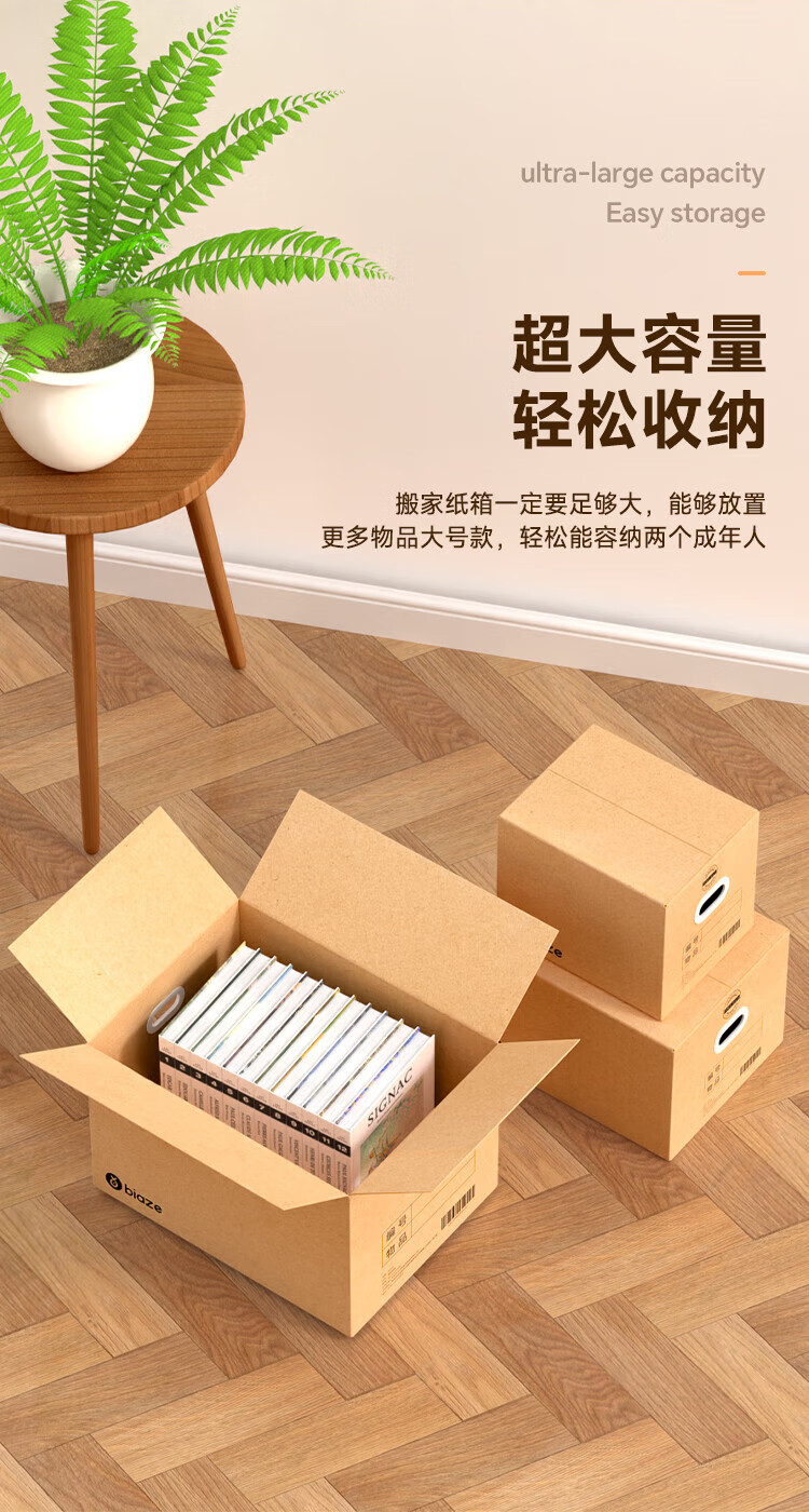 Biaz Life High-quality five-layer hardened moving cartons with buckle handles 60*40*50 large packing boxes, 5 packs, high hardness and thickened material BYG22