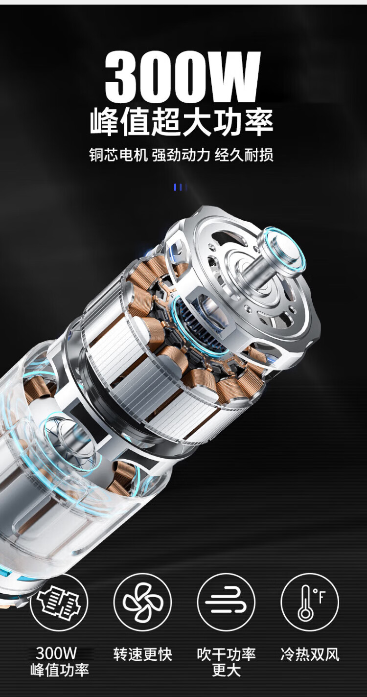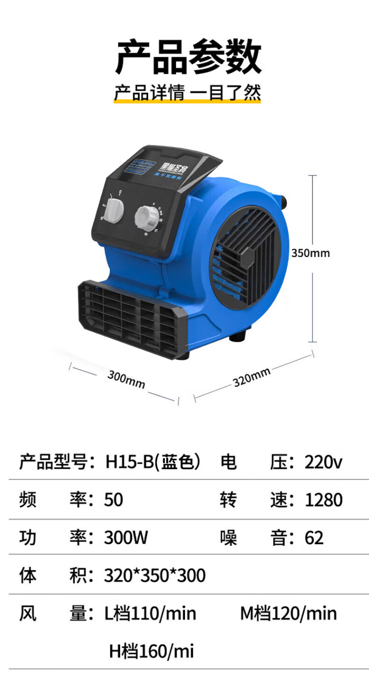 Black Cat Shengjiang blow dryer floor blower high-power commercial dehumidifier hair dryer 300W industrial commercial service area toilet floor carpet dryer air dryer blower random color