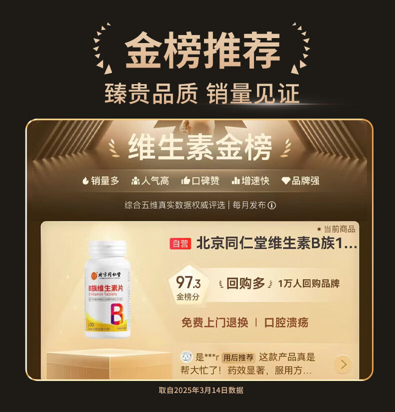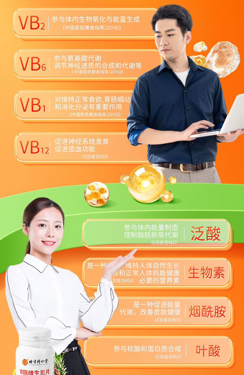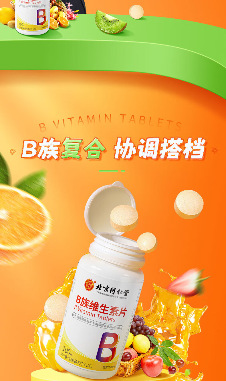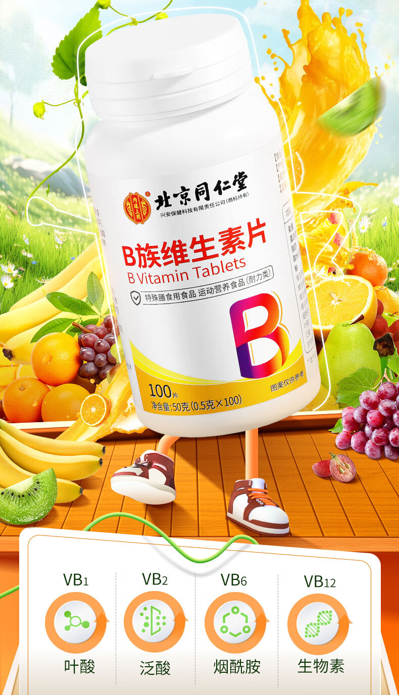 Tong Ren Tang vitamin B complex tablets biotin folic acid nicotinyl multivitamin b1b2b6b12b3 100 tablets