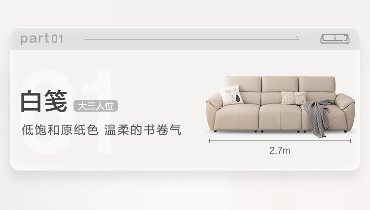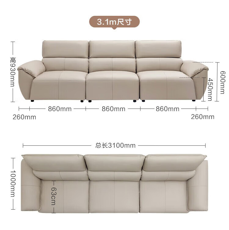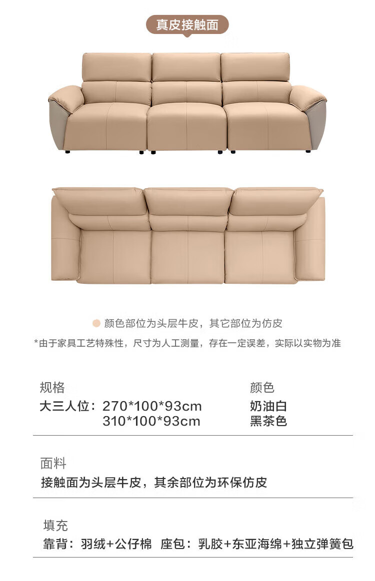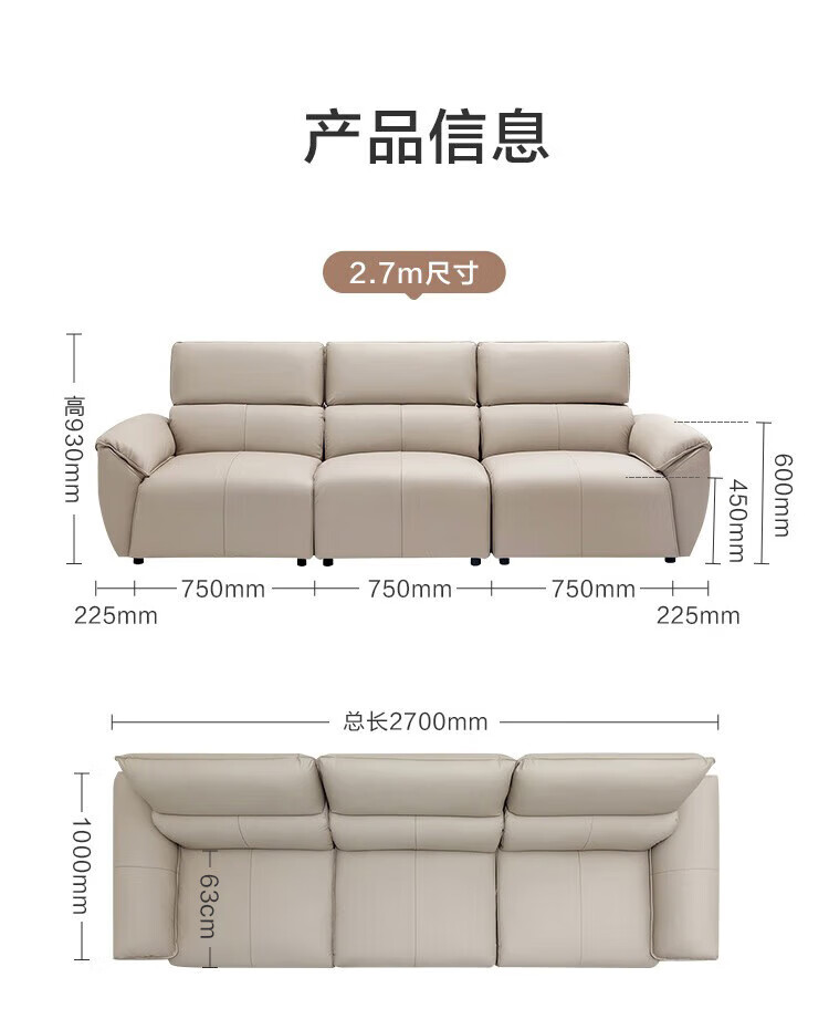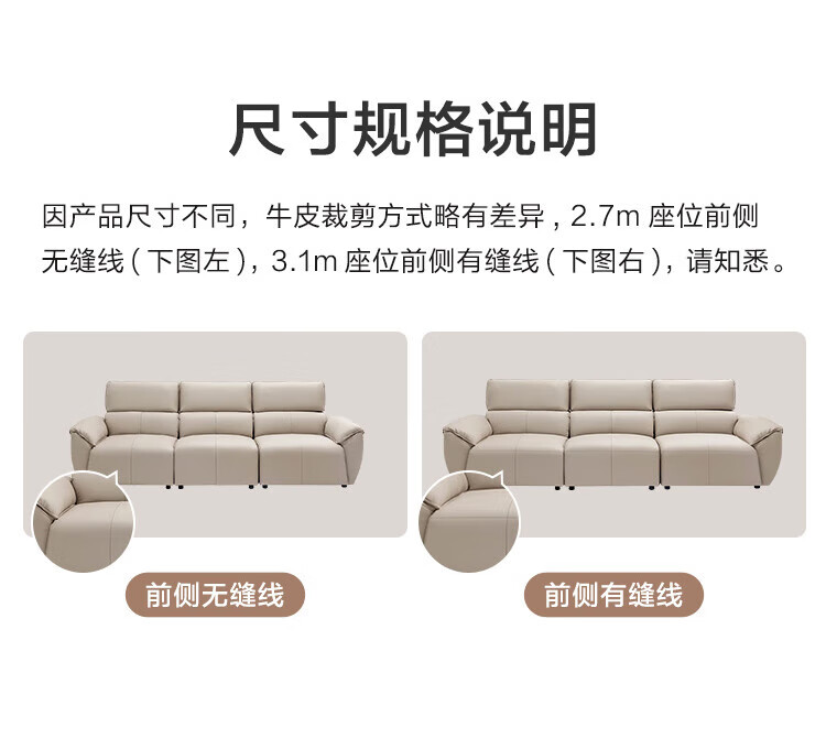 Made in Tokyo, home envelope genuine leather straight sofa living room small apartment first layer cowhide piano key 2.7m white