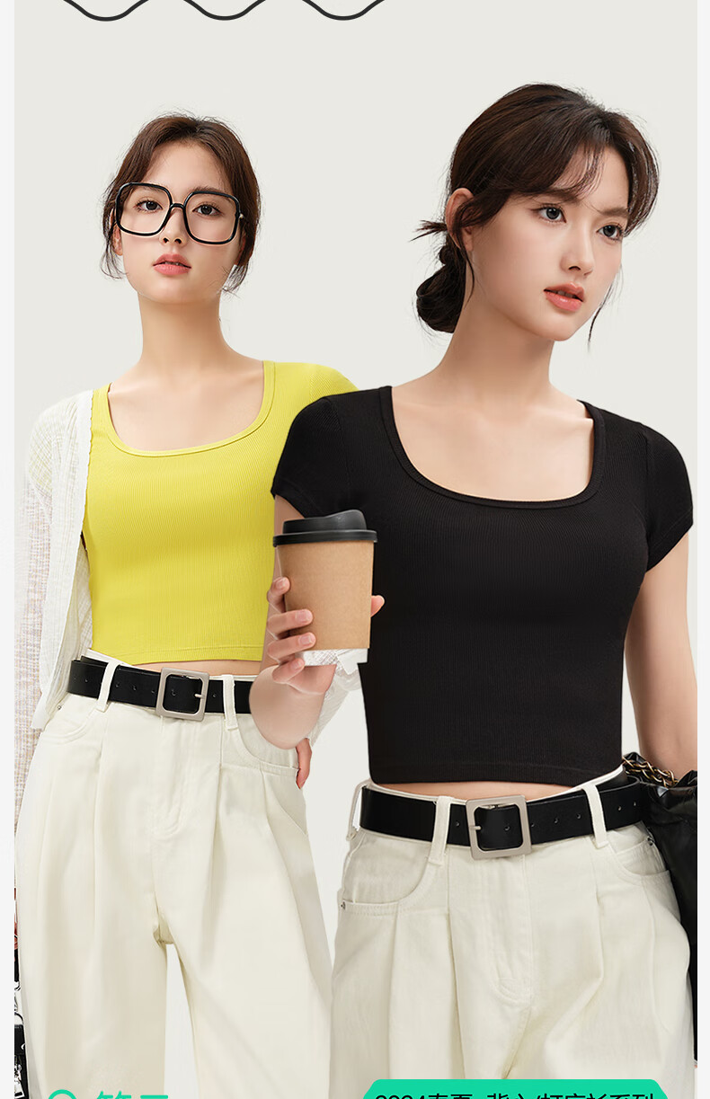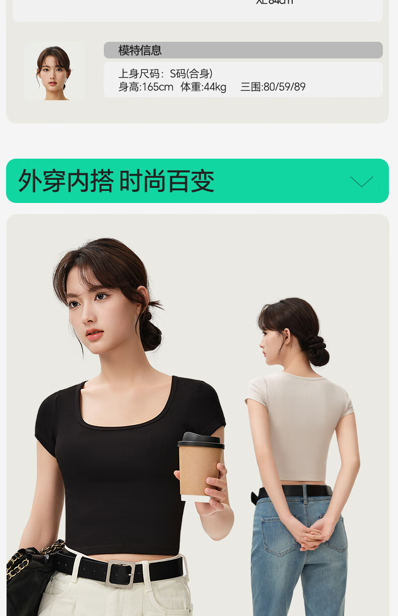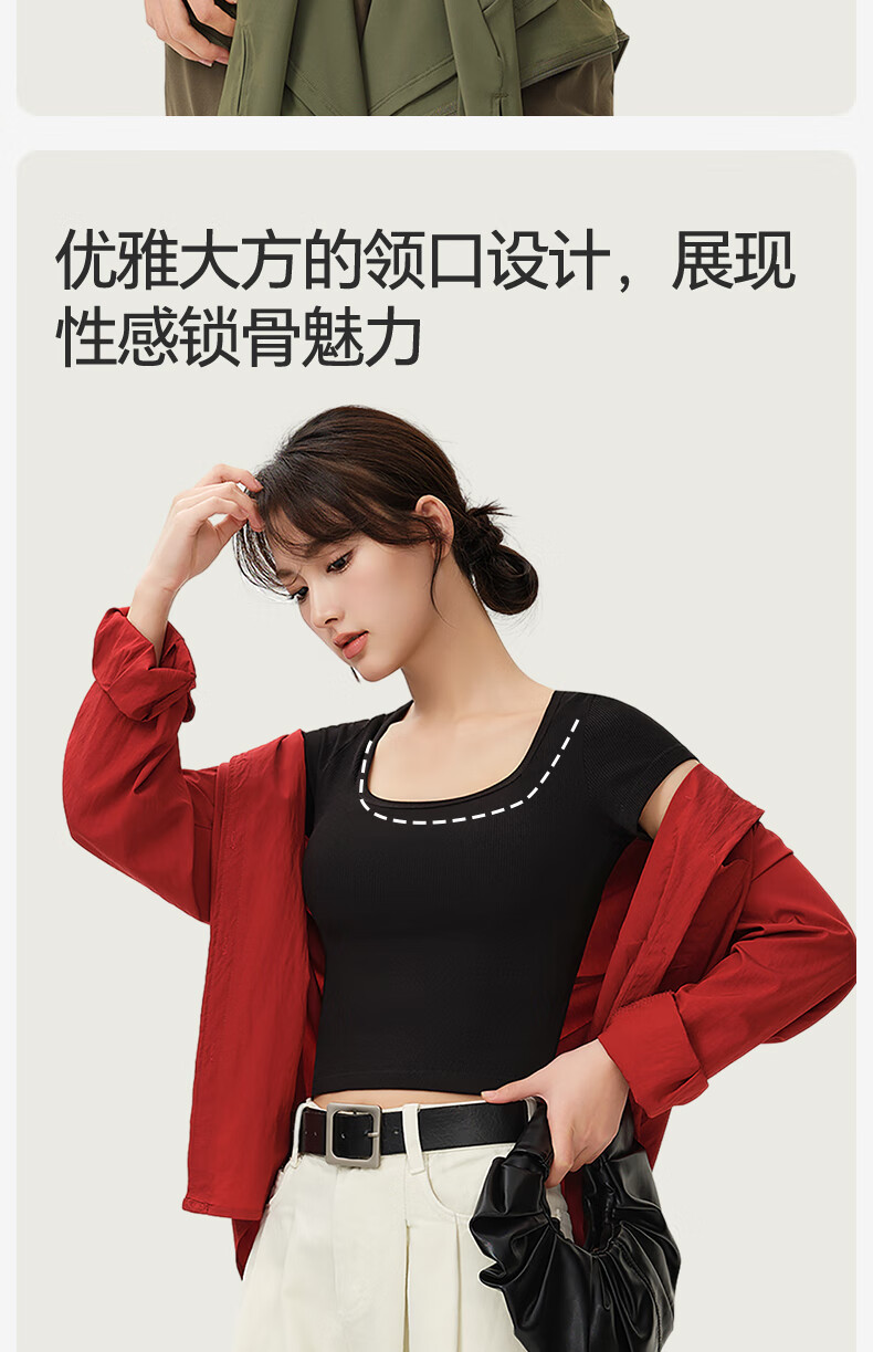 Jianyun modal cotton short-sleeved t-shirt women's thin square collar crop top short inner layering shirt base layer four seasons