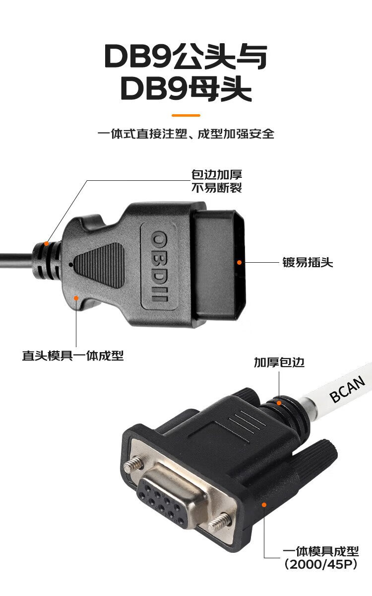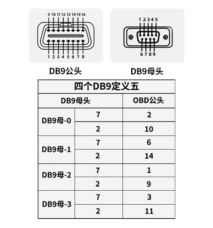 Baye car OBD adapter cable 4 DB9 to OBD2 detector cable Serial RS232 diagnostic tool gateway connection cable Definition 5 2 meters BY-OD94D5