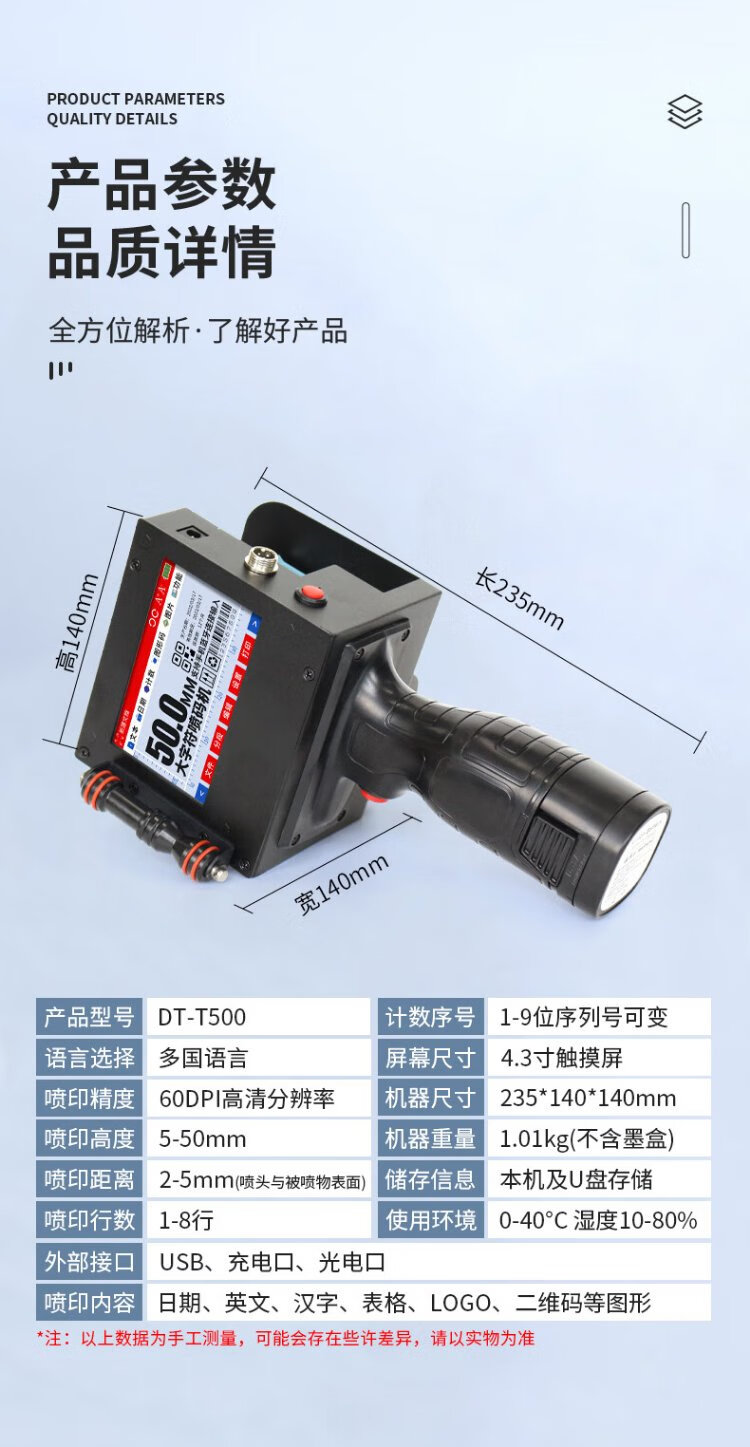 Ditu large character inkjet printer smart handheld small coder prints production date barcode Chinese and English numbers in large fonts - Y254X with black ink cartridge + positioning plate