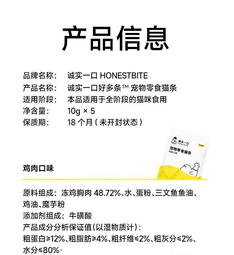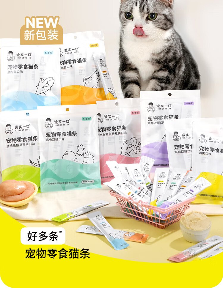 Honest one bite, many strips for adult cats, cat snacks, nutritious, no additives, 8 mixed flavors, 50g*8 packs