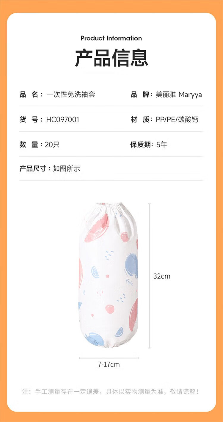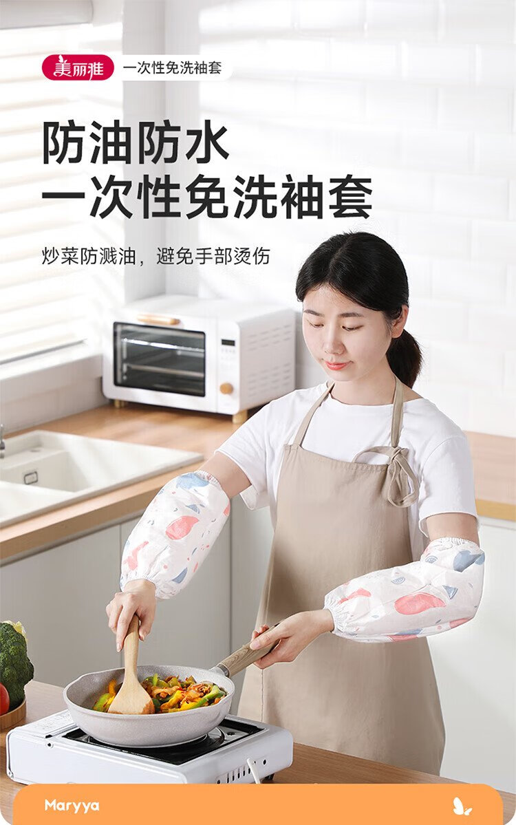 Meiya disposable sleeves 20 pieces, waterproof and oil-proof dishwashing extended sleeves for adults in the kitchen