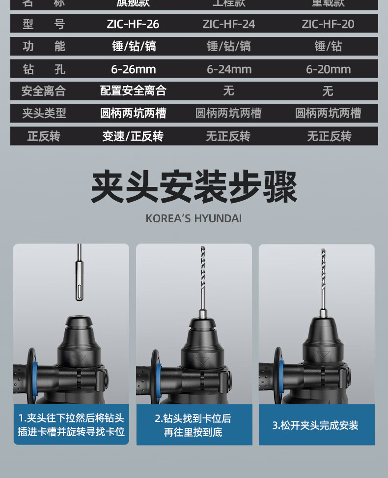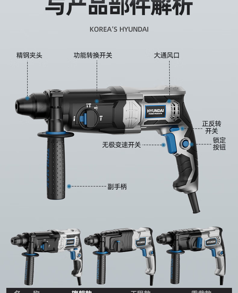 HYUNDAI Korean modern impact drill electric hammer electric drill electric pick multifunctional household power tool with tool box set