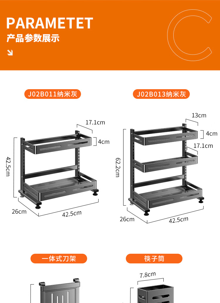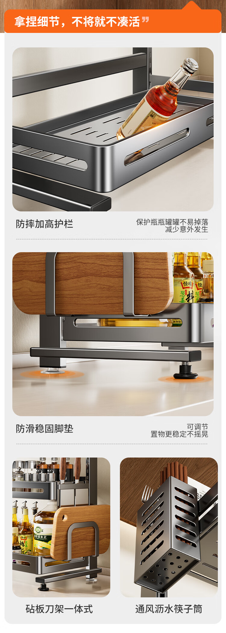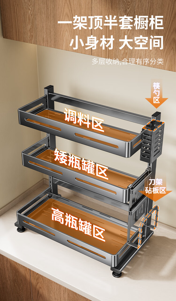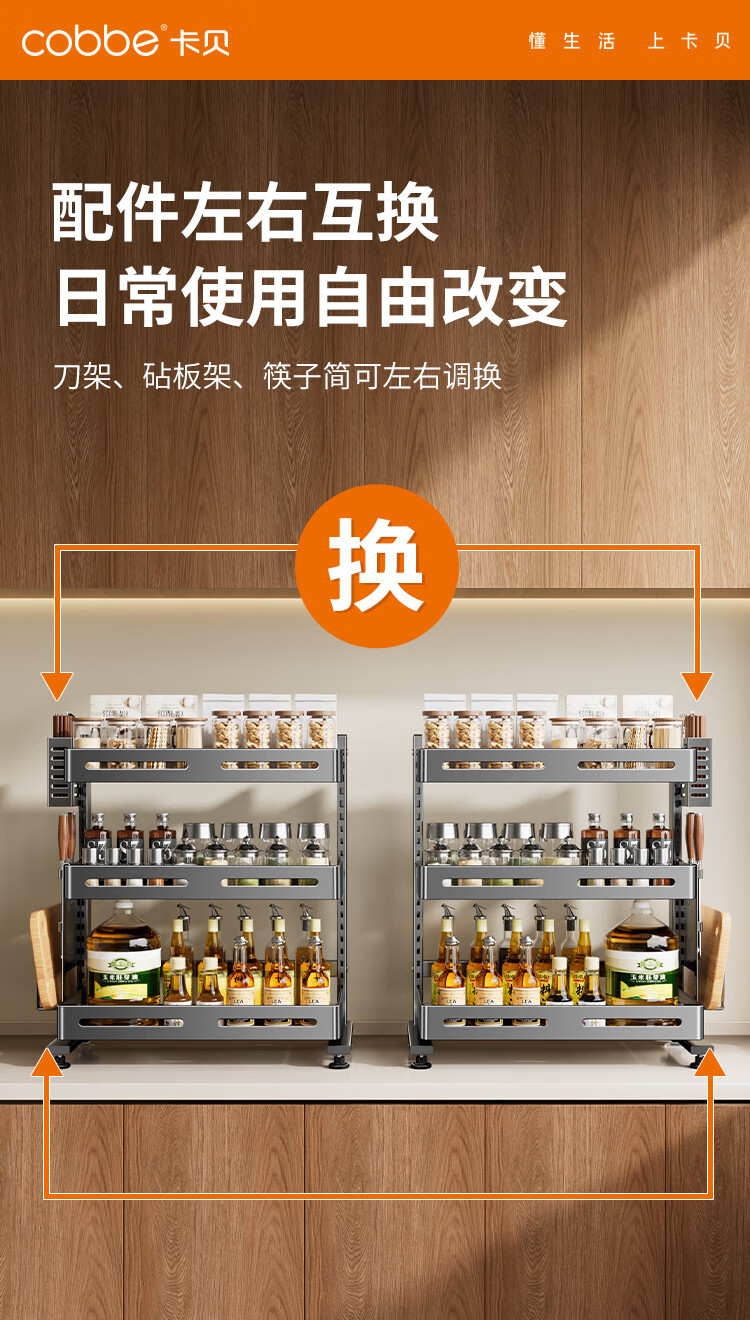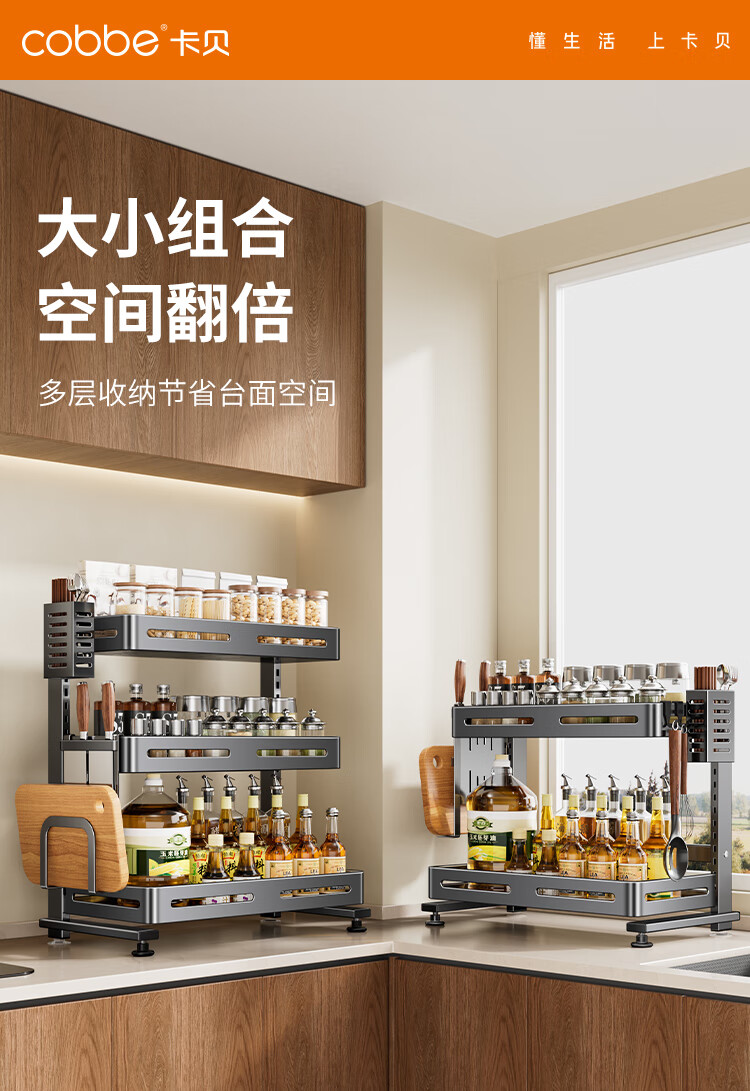 Cobbe kitchen rack spice rack countertop kitchen utensil storage spice storage rack knife rack multi-functional rack double layer