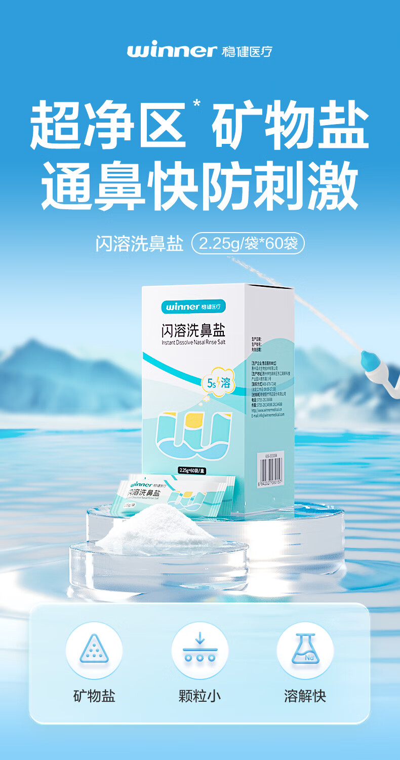 Robust nasal wash salt for children and adults special deep well mineral salt instant nasal wash salt 2.25g*60 bags/box