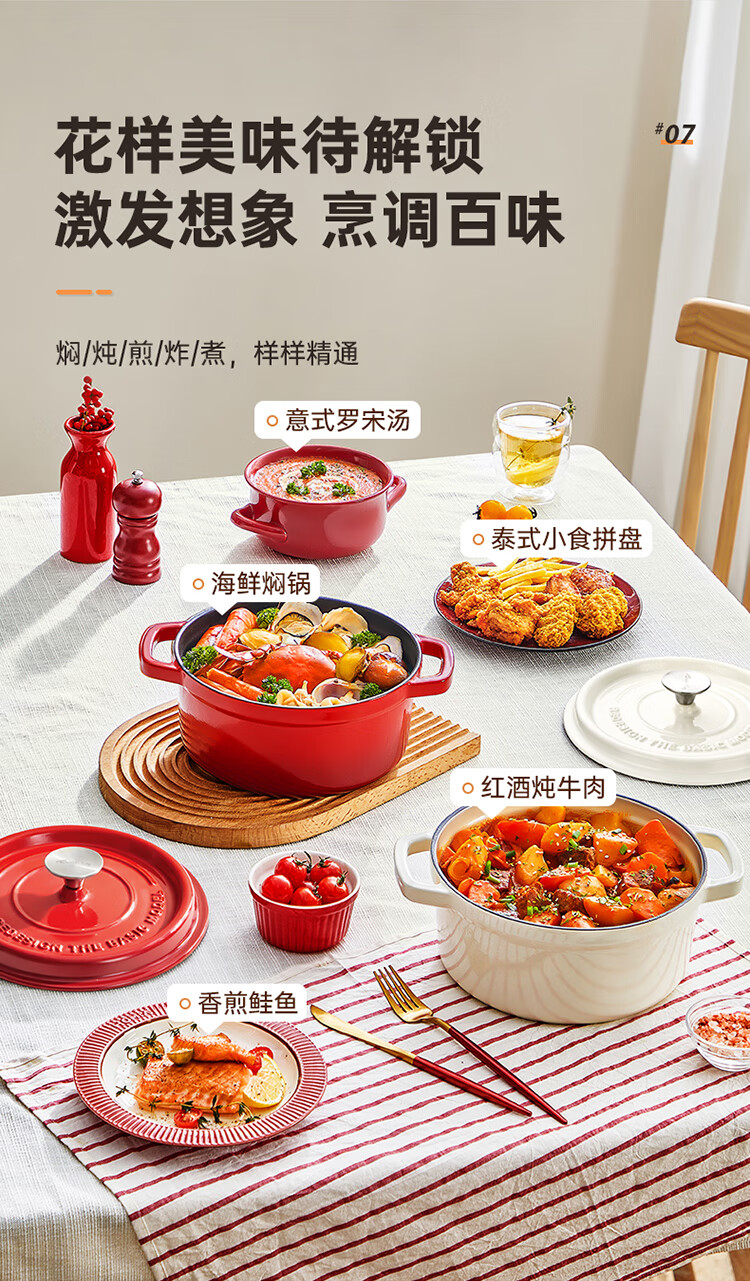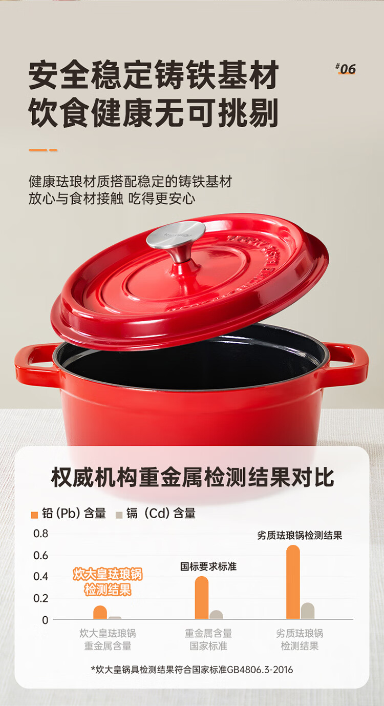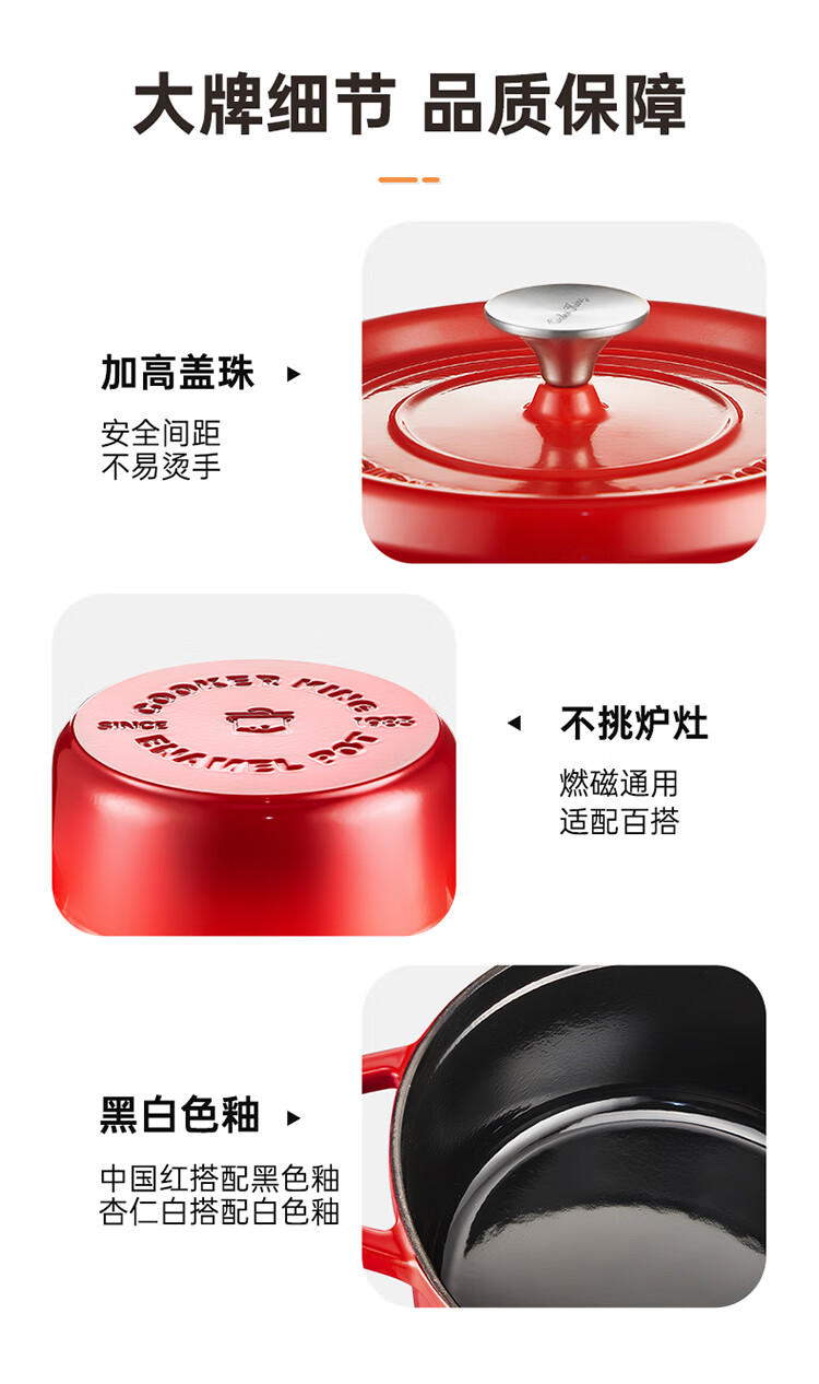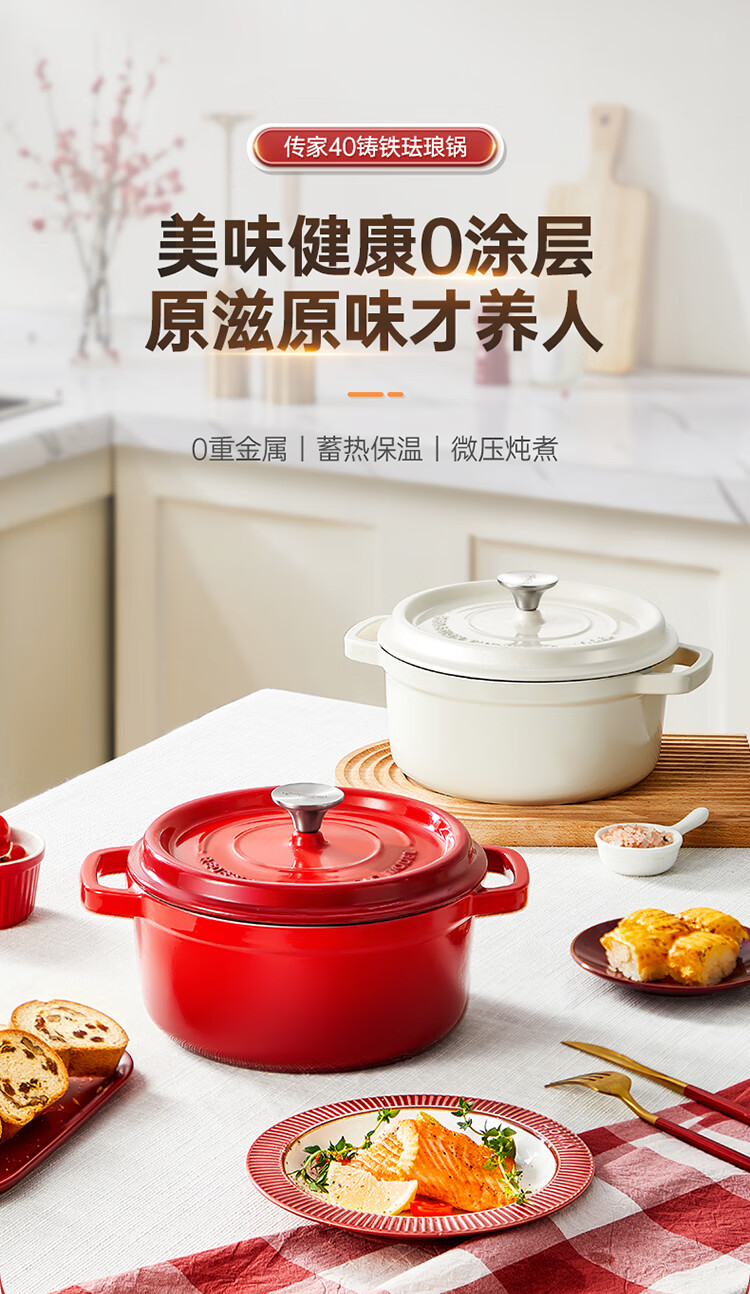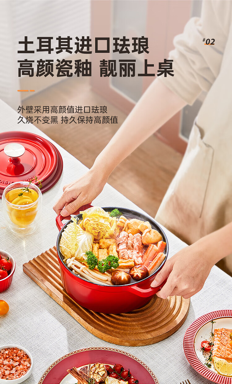 Cooking Emperor enamel pot cast iron pot household stew pot casserole soup pot stew pot induction cooker gas cooking pot 24cm