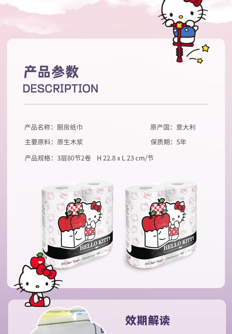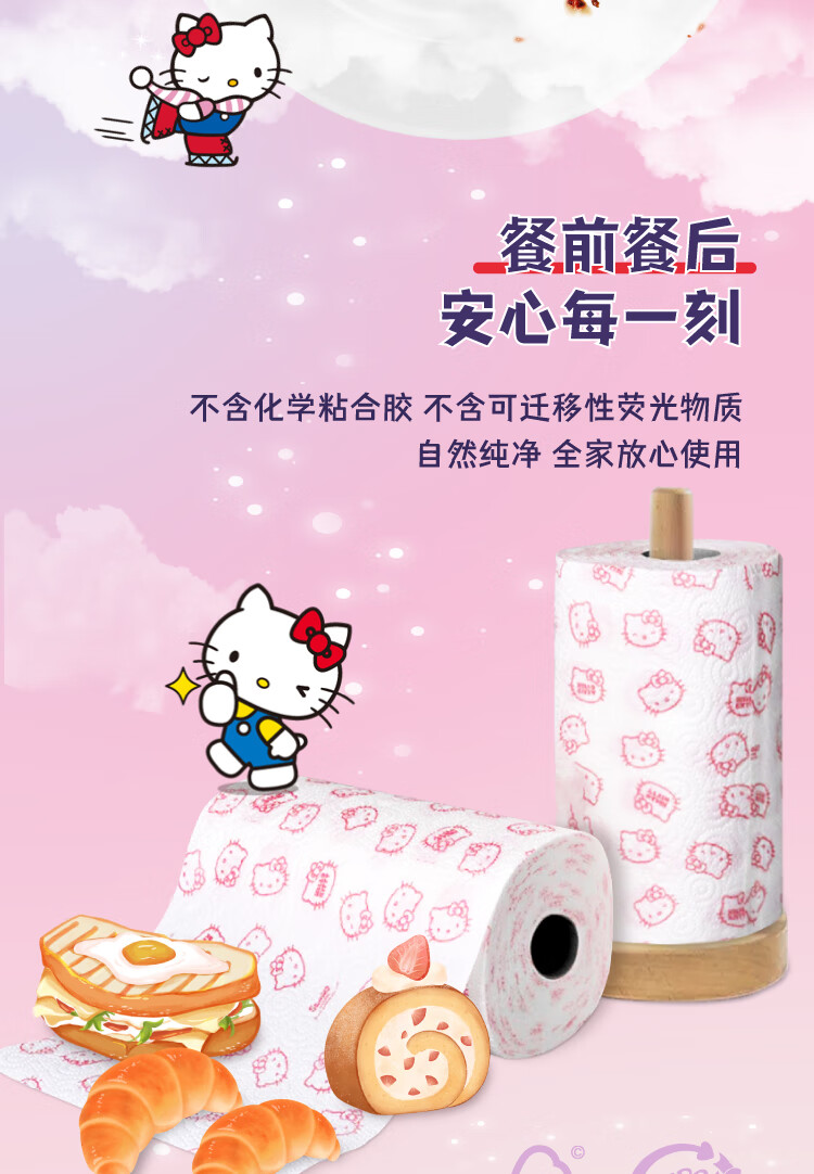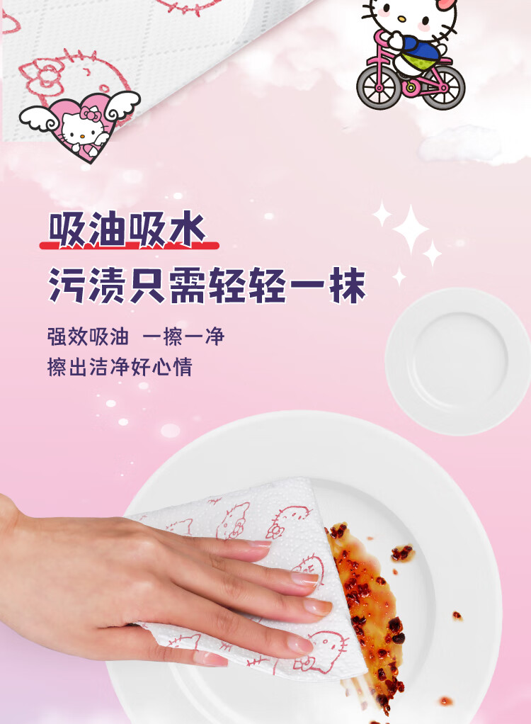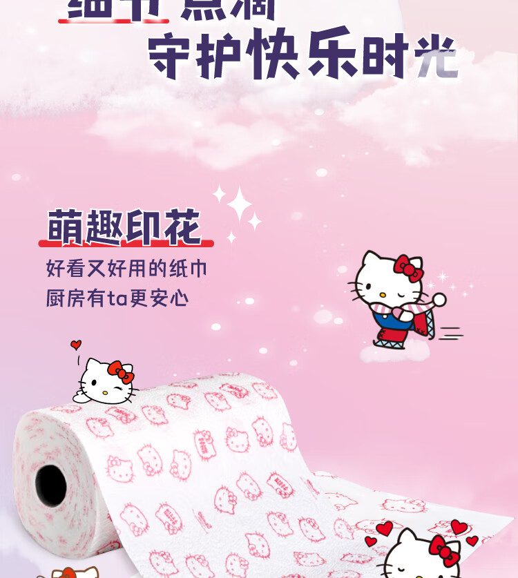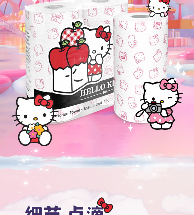 Kartika kitchen printed paper hello kitty 80 sections * 2 rolls disposable paper towels oil-absorbent kitchen and bathroom cleaning dry and wet
