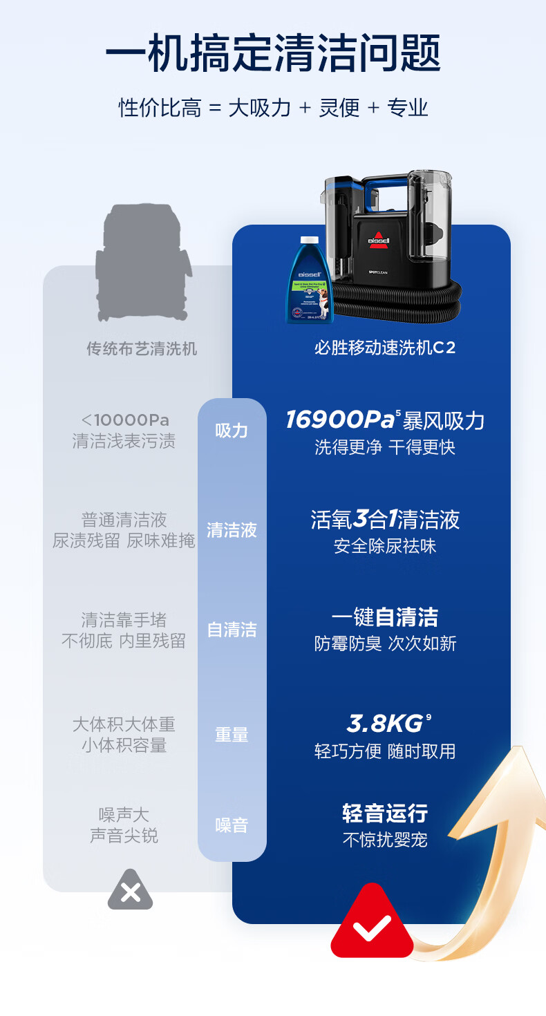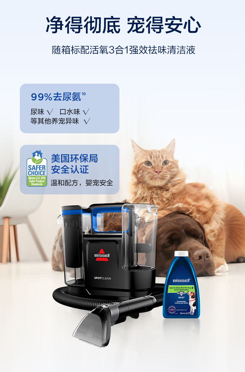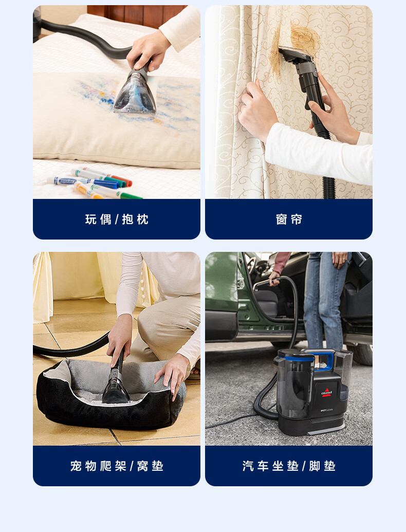 BISSELL spray-suction integrated household cloth cleaning machine, mite removal carpet, sofa, mattress and curtain cleaning tool, multi-functional cleaning machine C2 3861Z