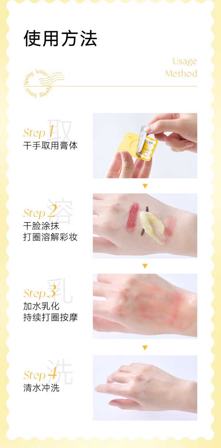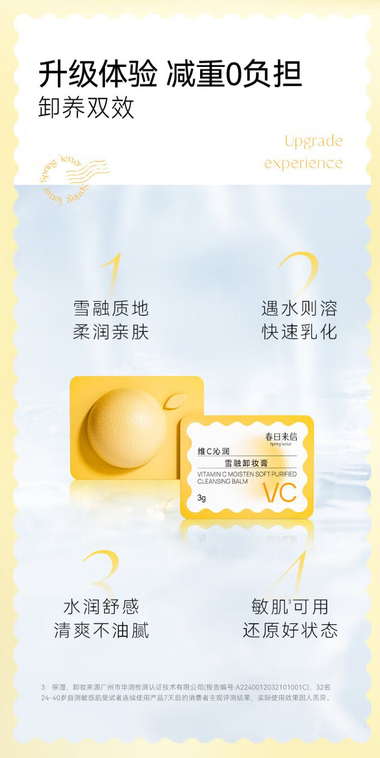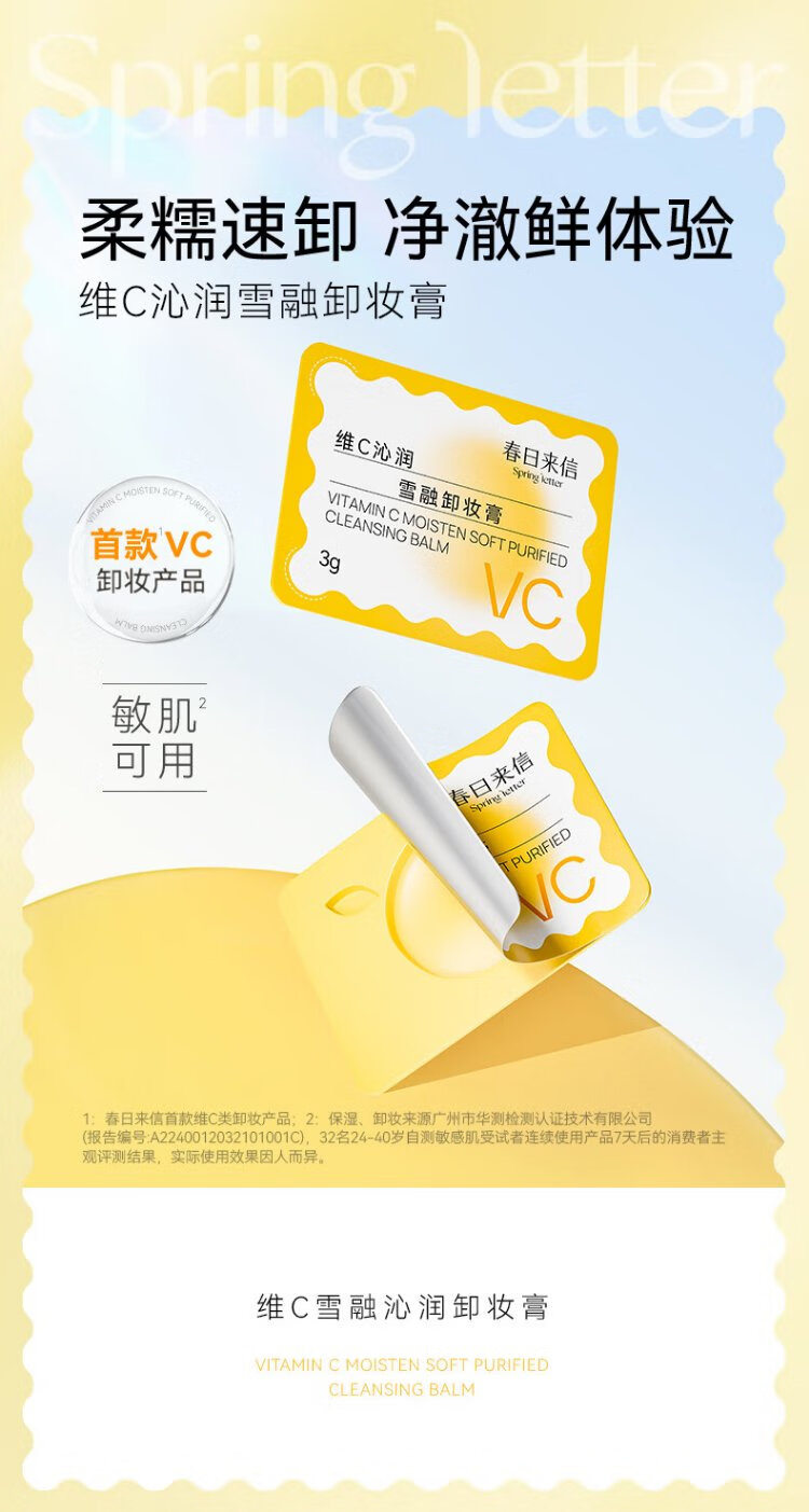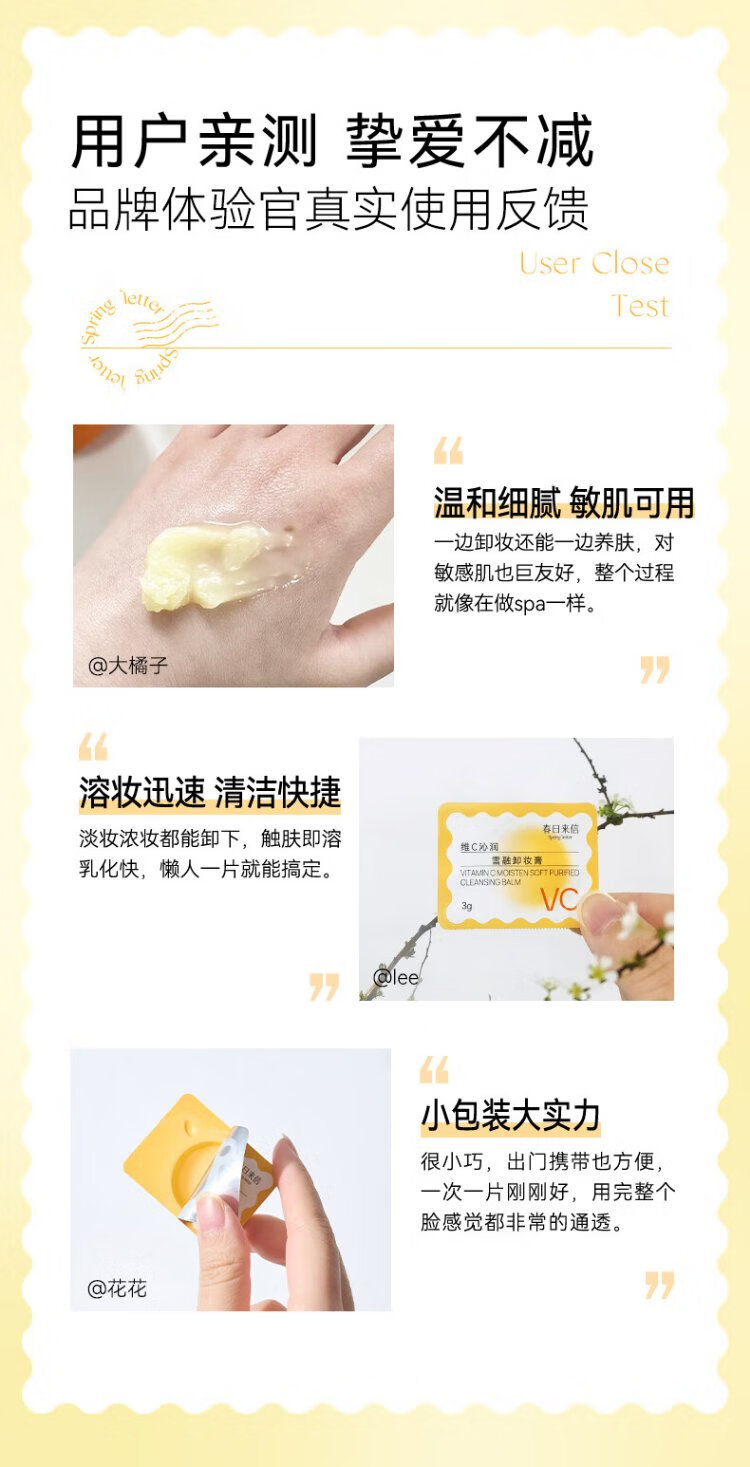 Spring Letter VC New Version 2.0 Disposable Makeup Remover Balm for Sensitive Skin Suitable for Eyes, Lips and Face Non-irritating Vitamin C Makeup Remover 3 Tablets Trial Pack
