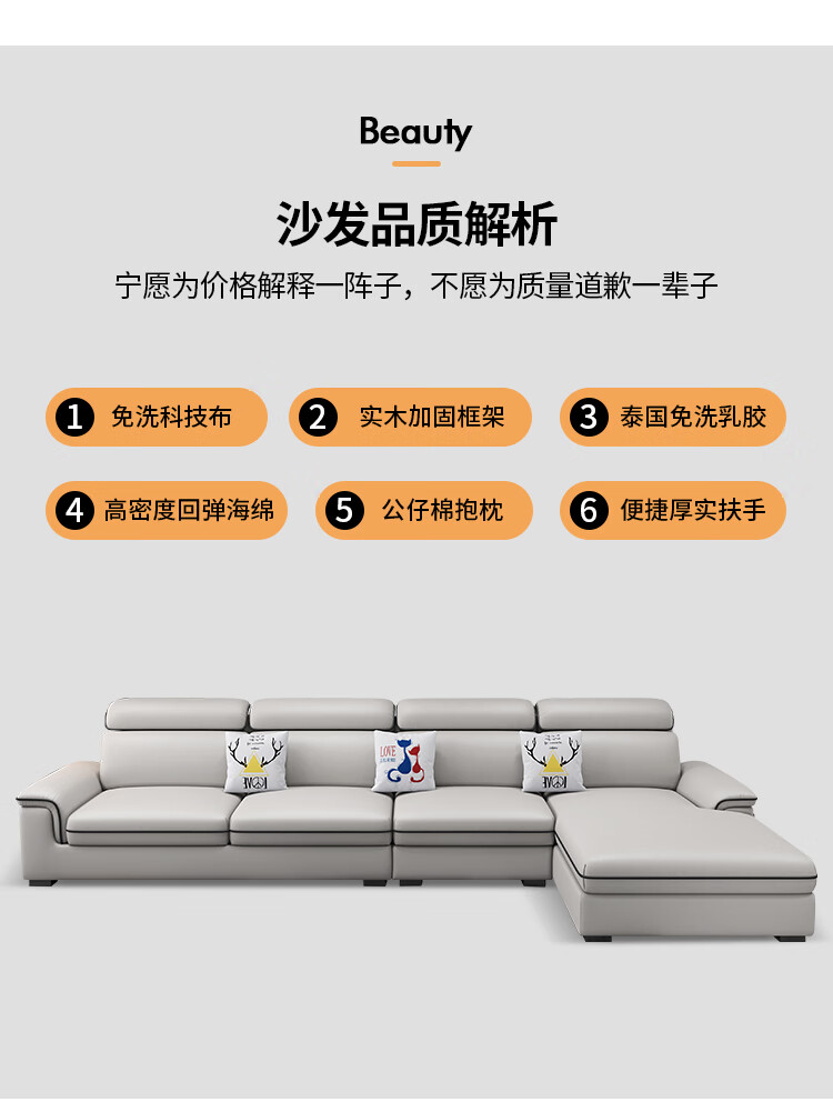 MuMian technology fabric sofa modern simple large and small apartment living room home corner fabric sofa SF-J01 2.7 imperial concubine