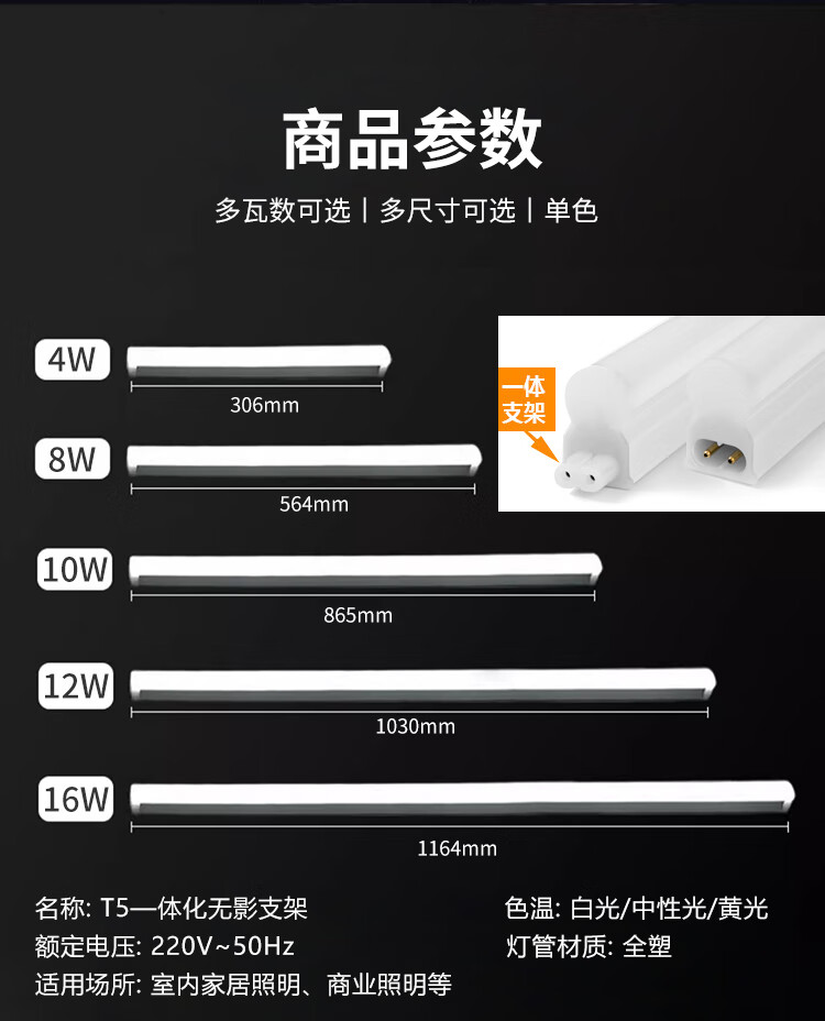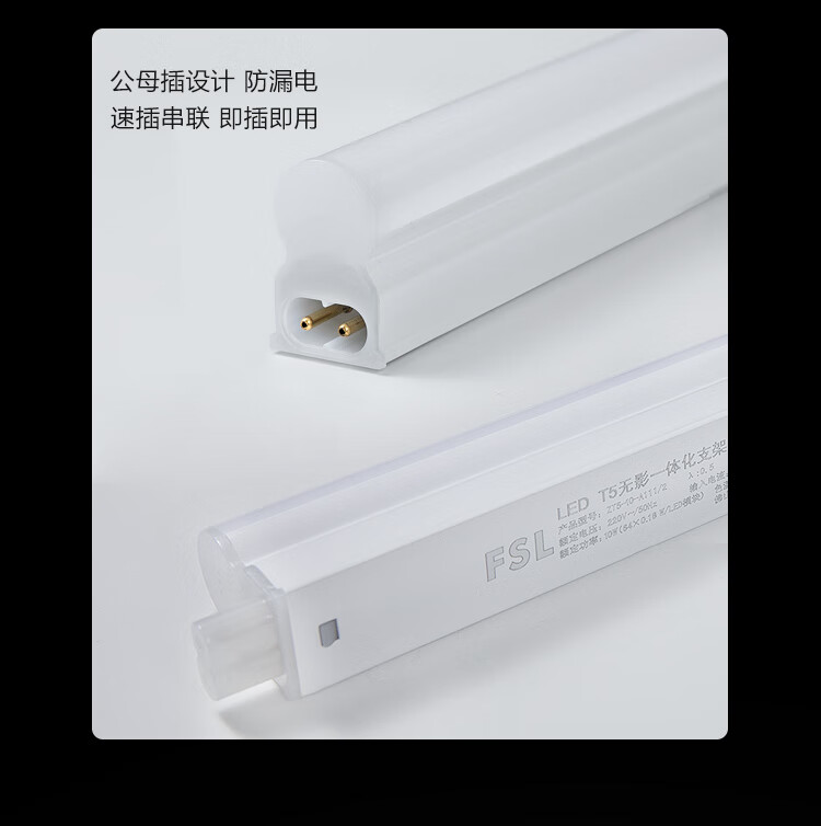 FSL Foshan Lighting T5LED integrated lamp bracket set engineering commercial factory fluorescent tube energy-saving lamp male and female plug 1.2 meters 16W white light 6500K