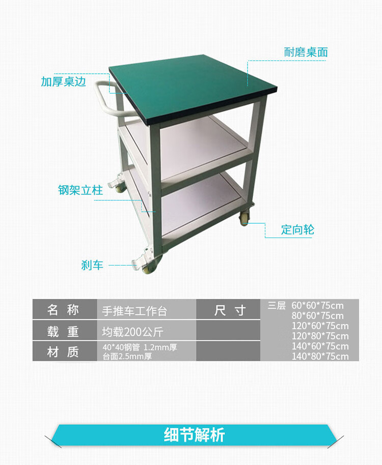 Bingyu anti-static movable trolley wheeled workbench repair table assembly line operating table electronics factory packing table tool cart three layers 120*60*75cm BYS-378