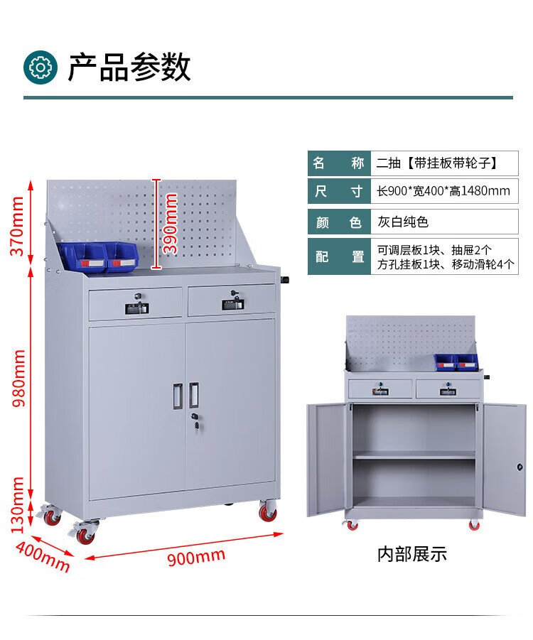Huizhen tool cabinet workshop locker repair tool storage cabinet removable finishing cabinet two drawers gray white HV890