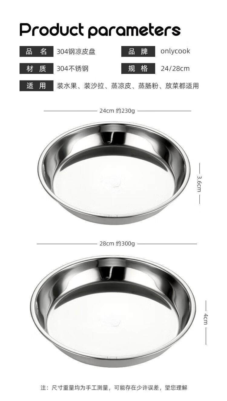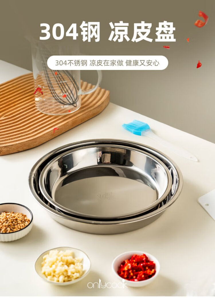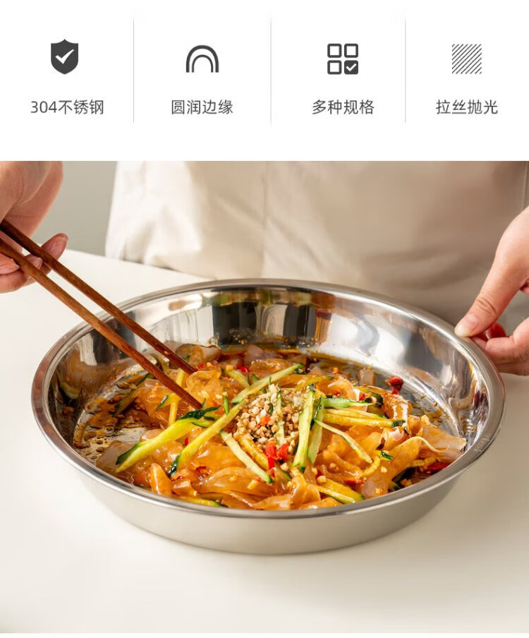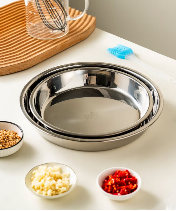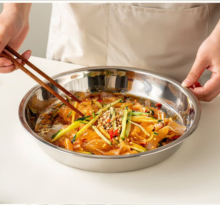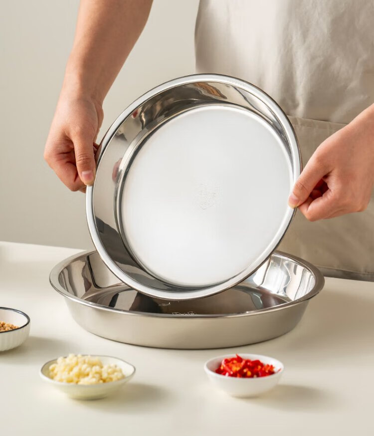 Onlycook304 stainless steel plate household plate thickened grill pan fish plate tableware round dinner plate vegetable plate tea tray-24