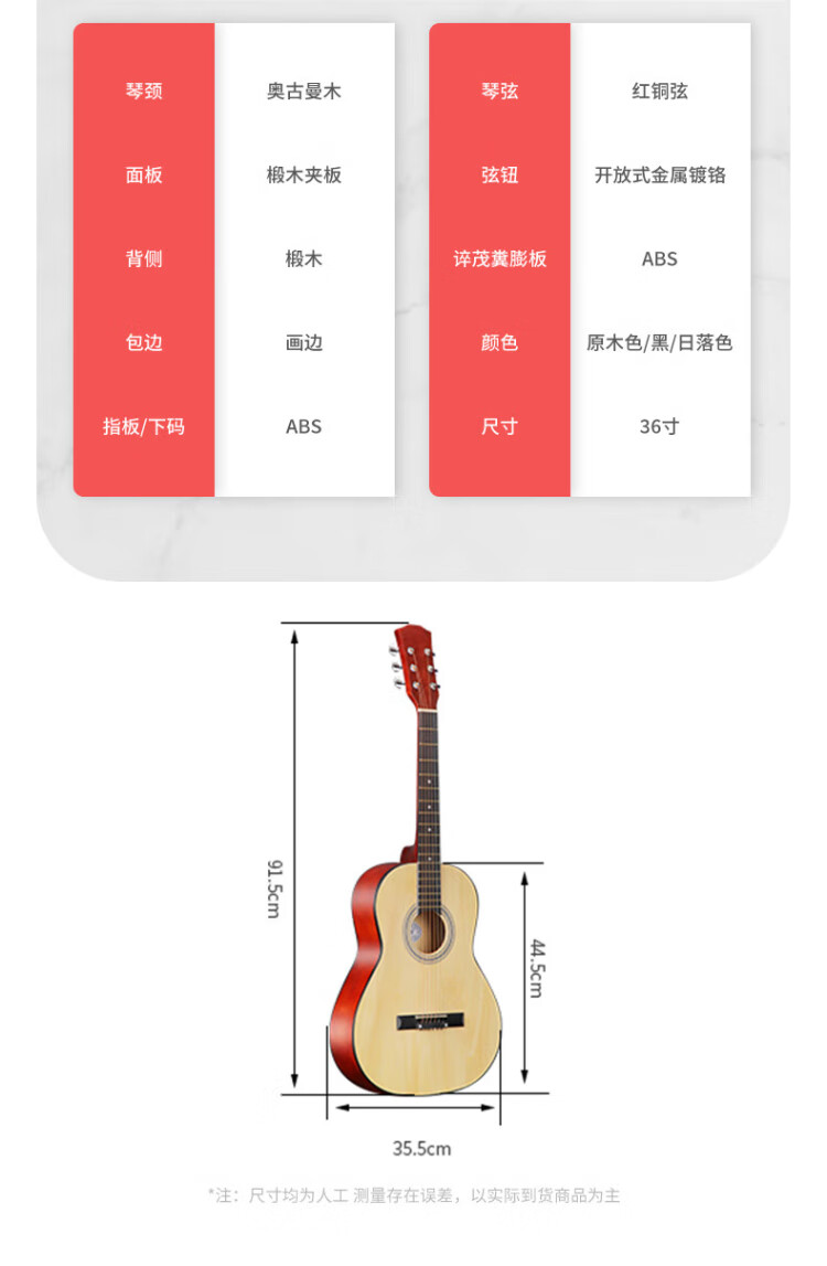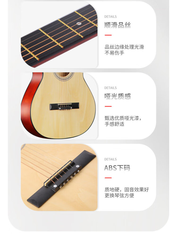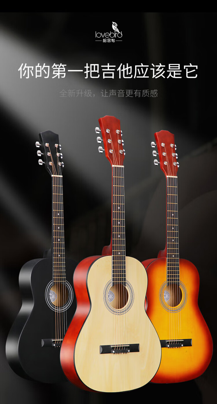 Lovebird Guitar Folk Guitar 36-inch Beginner Novice Instrument Wood Color