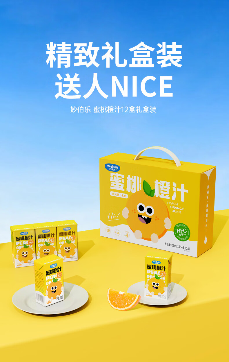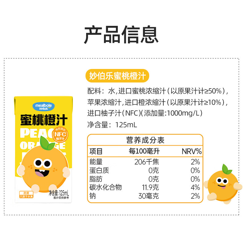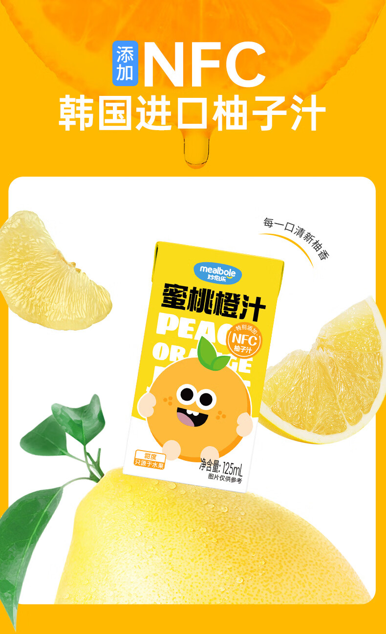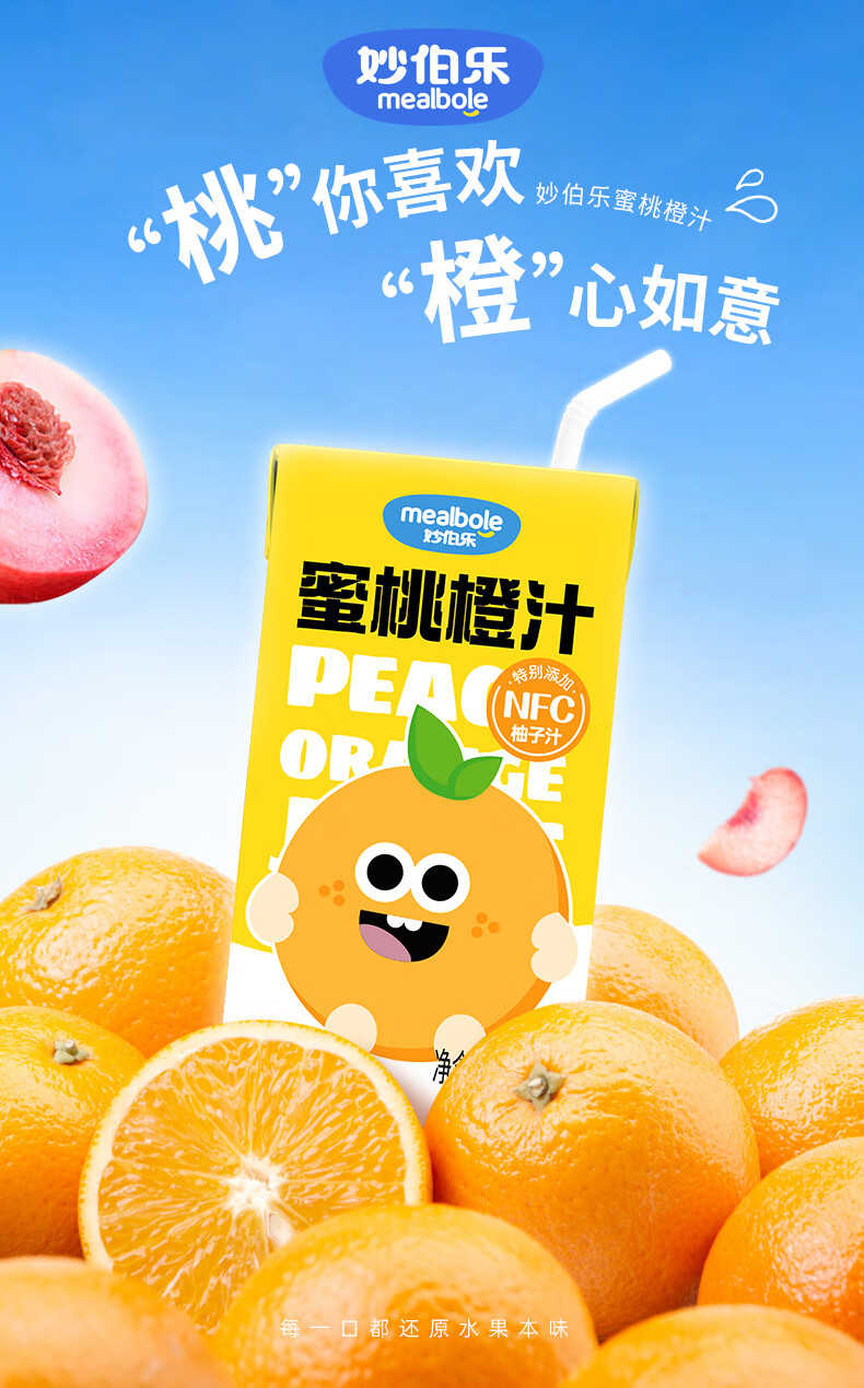 Miaobolo Peach Orange Juice Children's Juice 125ml*3 Additive-free Fruit and Vegetable Juice Beverage 100% Original Juice Total Content