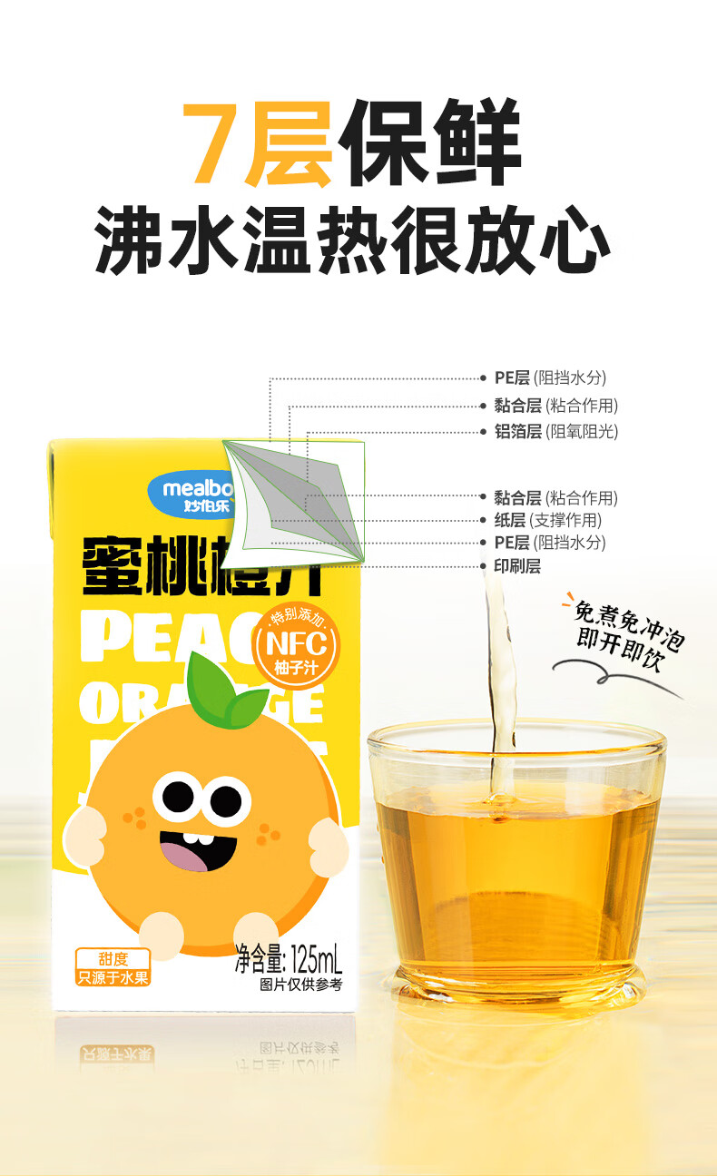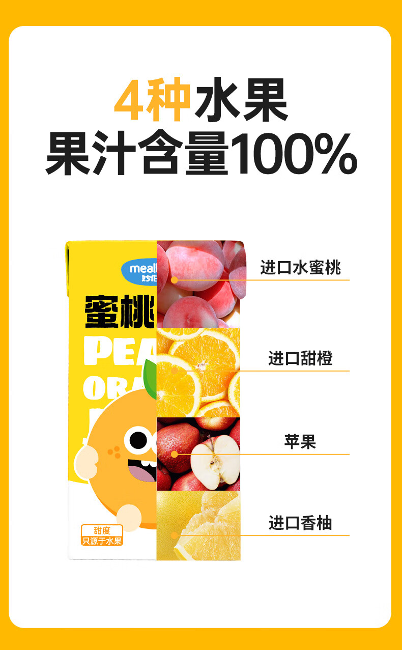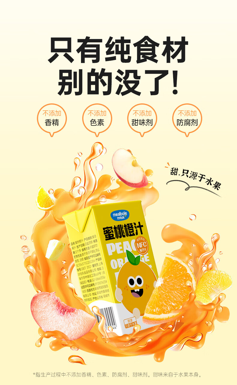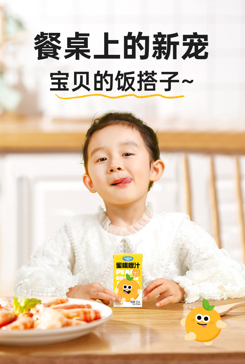 Miaobolo Peach Orange Juice Children's Juice 125ml*3 Additive-free Fruit and Vegetable Juice Beverage 100% Original Juice Total Content