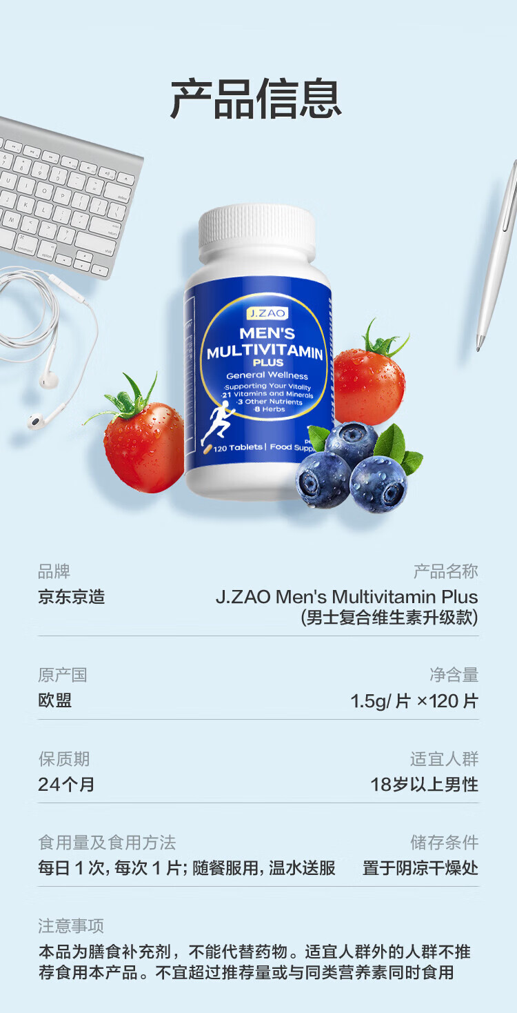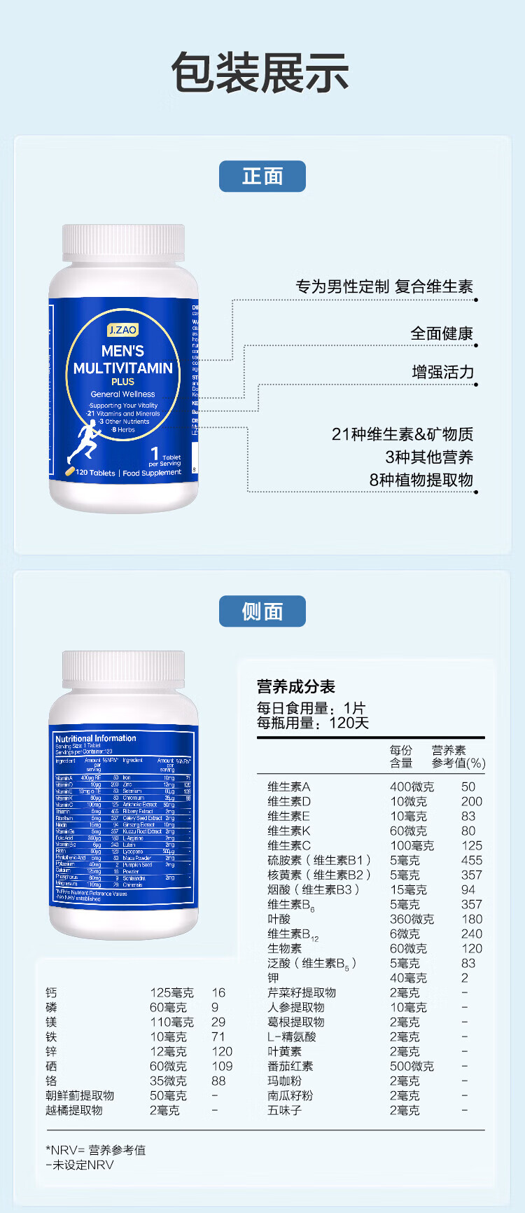 J.ZAO Jingjing Tokyo Men's Multivitamin 120 Tablets Arginine B Complex Vitamin C Vitamin E Zinc Magnesium Selenium Nutritional Pack