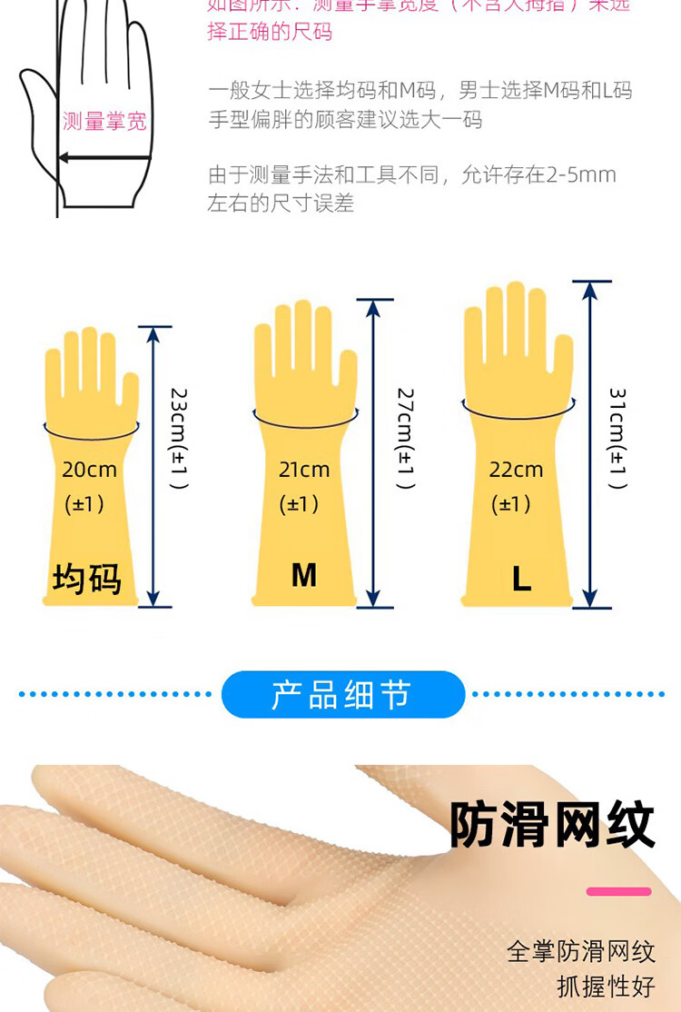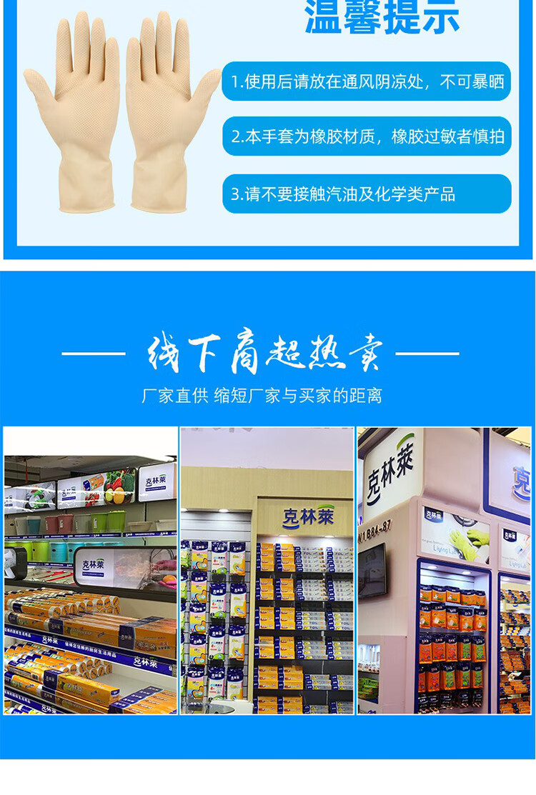 Kelinlai imported natural rubber multi-purpose high-elastic thin gloves large size 2 pack C24100
