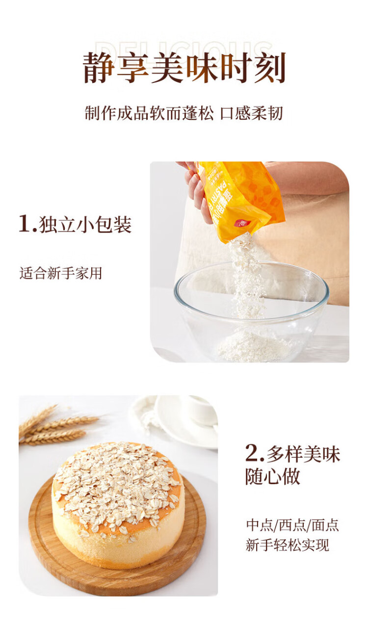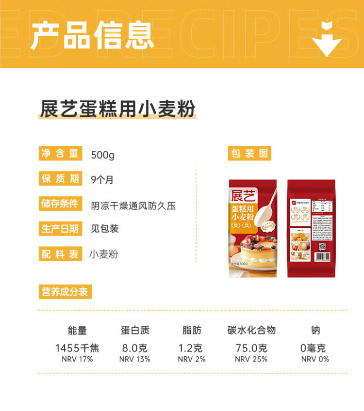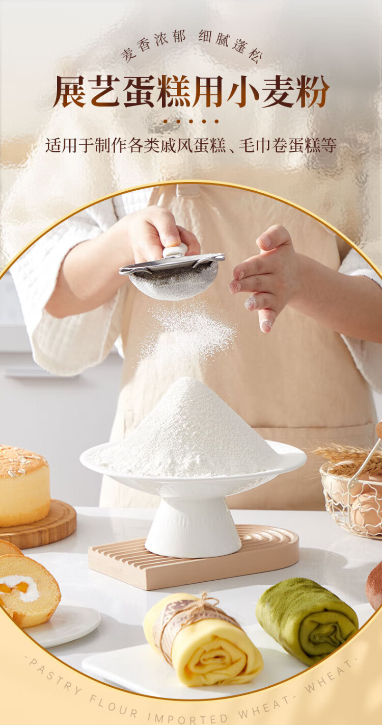Zhanyi cake flour low-gluten wheat flour 500g*2+aluminum-free double-action baking powder 50g baking ingredients set